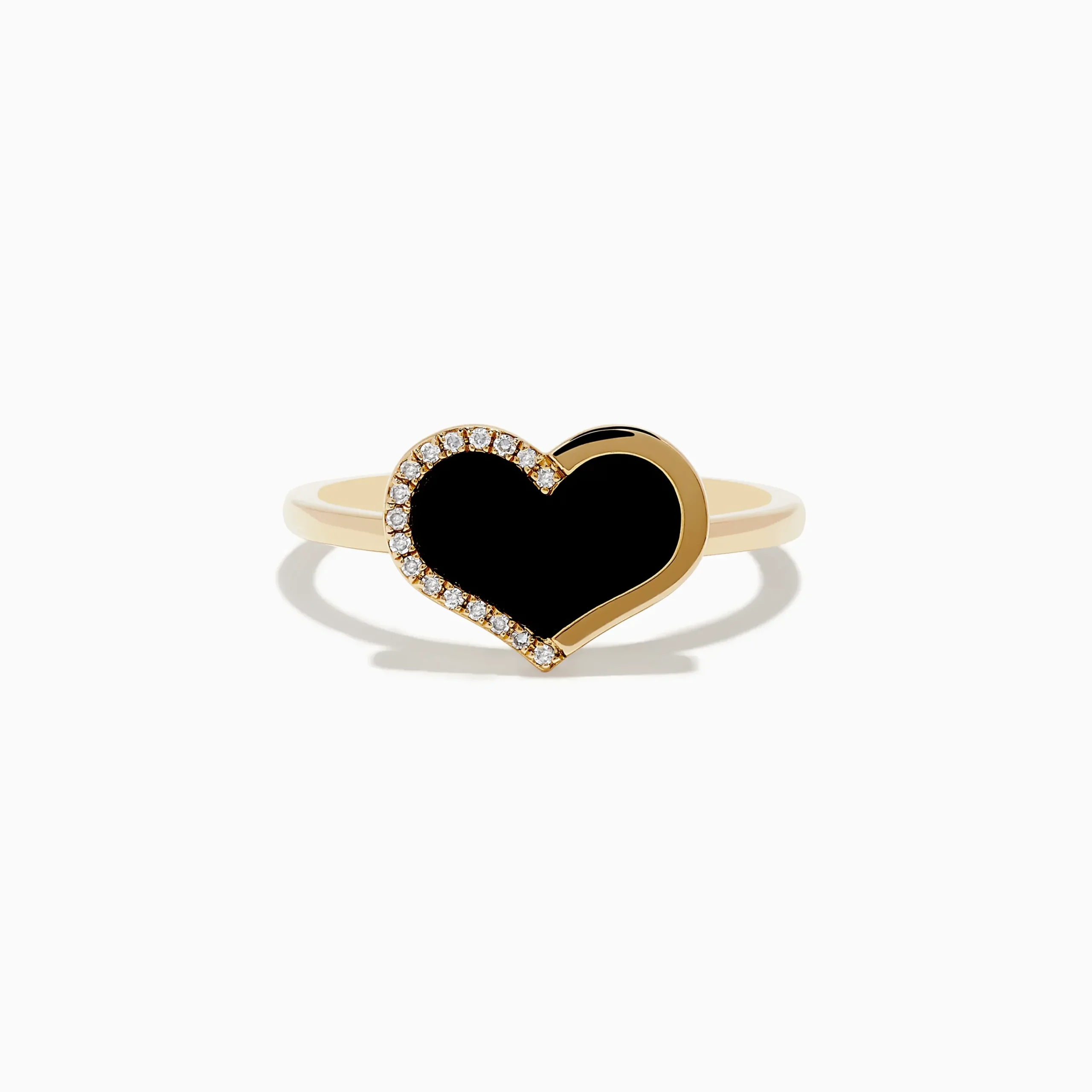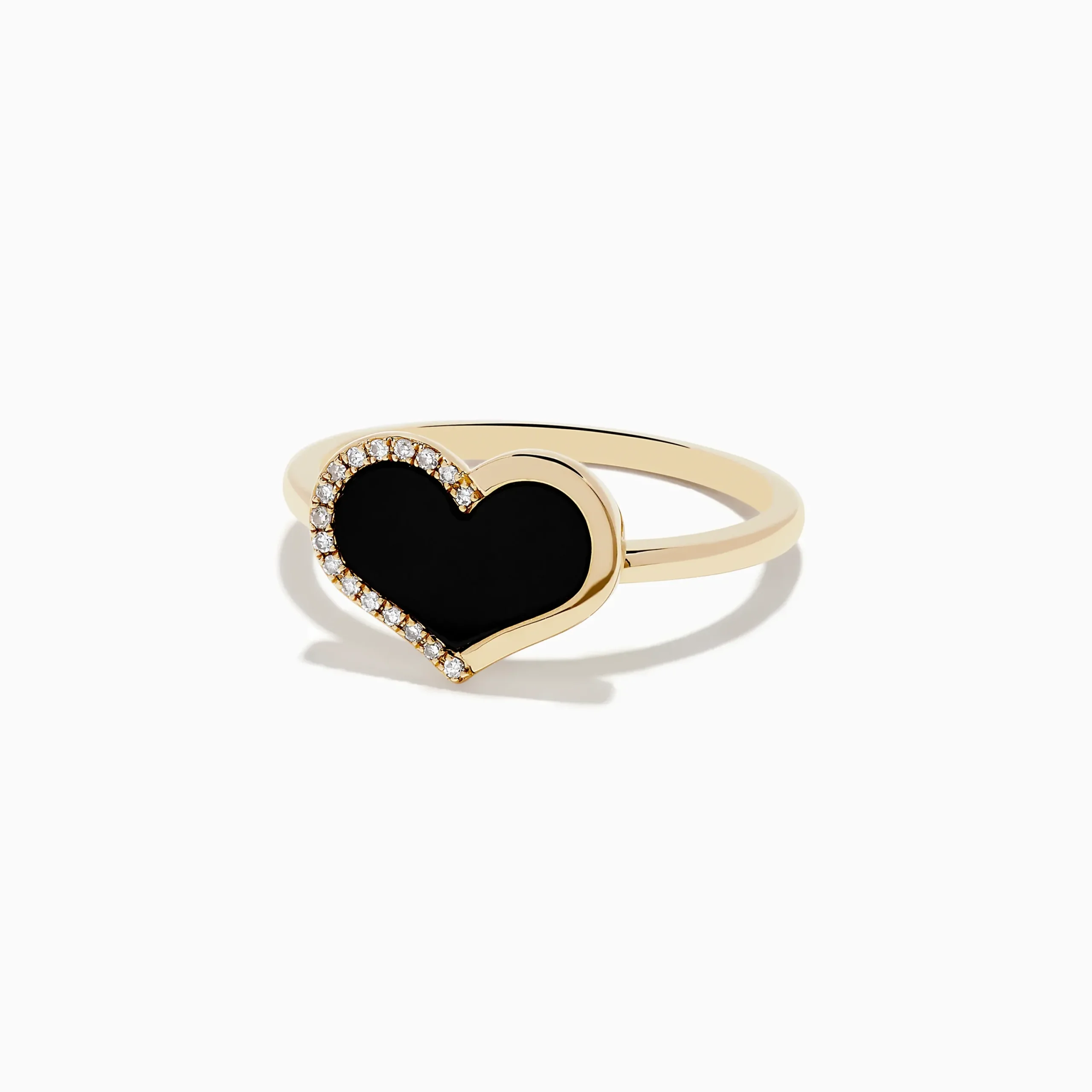 Effy Eclipse 14K Yellow Gold Onyx and Diamond Heart Ring