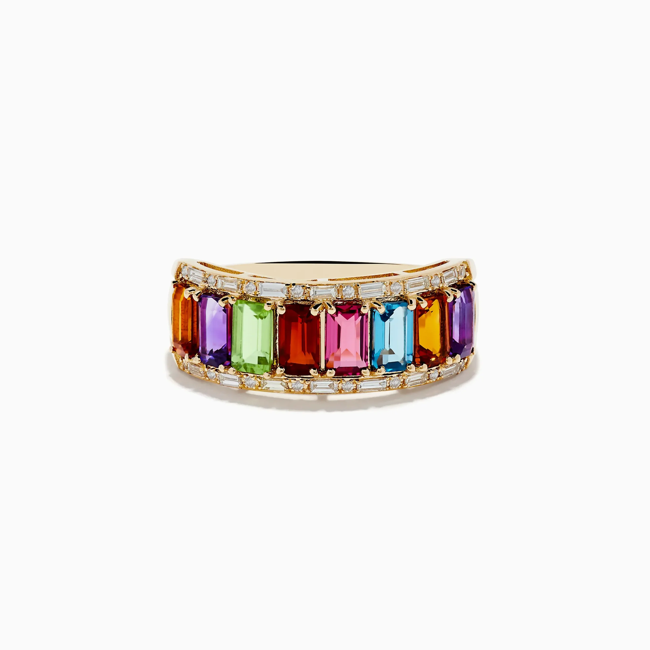 Mosaic 14K Yellow Gold Multi Gemstone and Diamond Ring