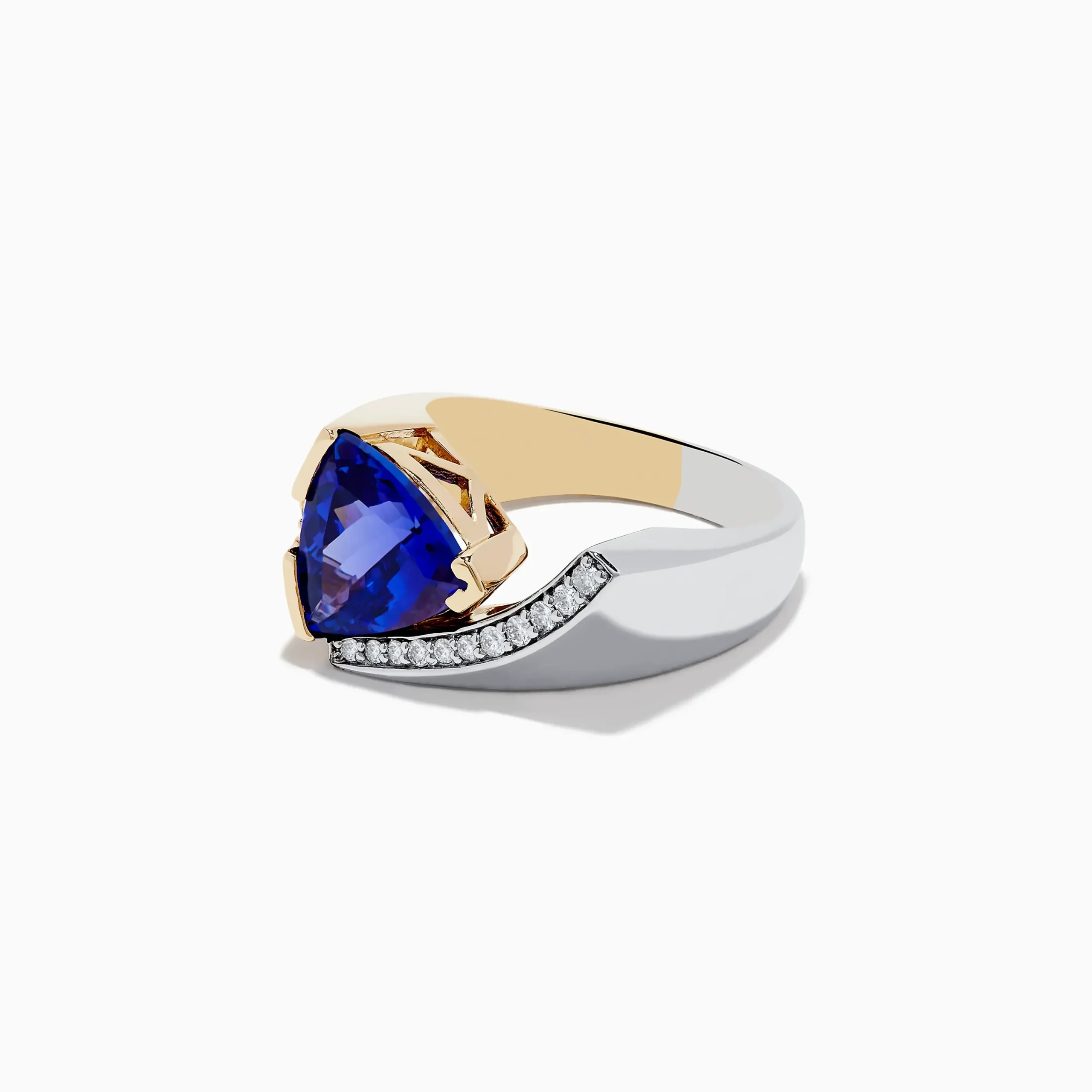 Metal:14K Gold Metal Color:Yellow and WhiteStone: Round Diamond 0.2 Stone 2: Trillion Tanzanite 2.85Effy 14K Two-Tone Go…