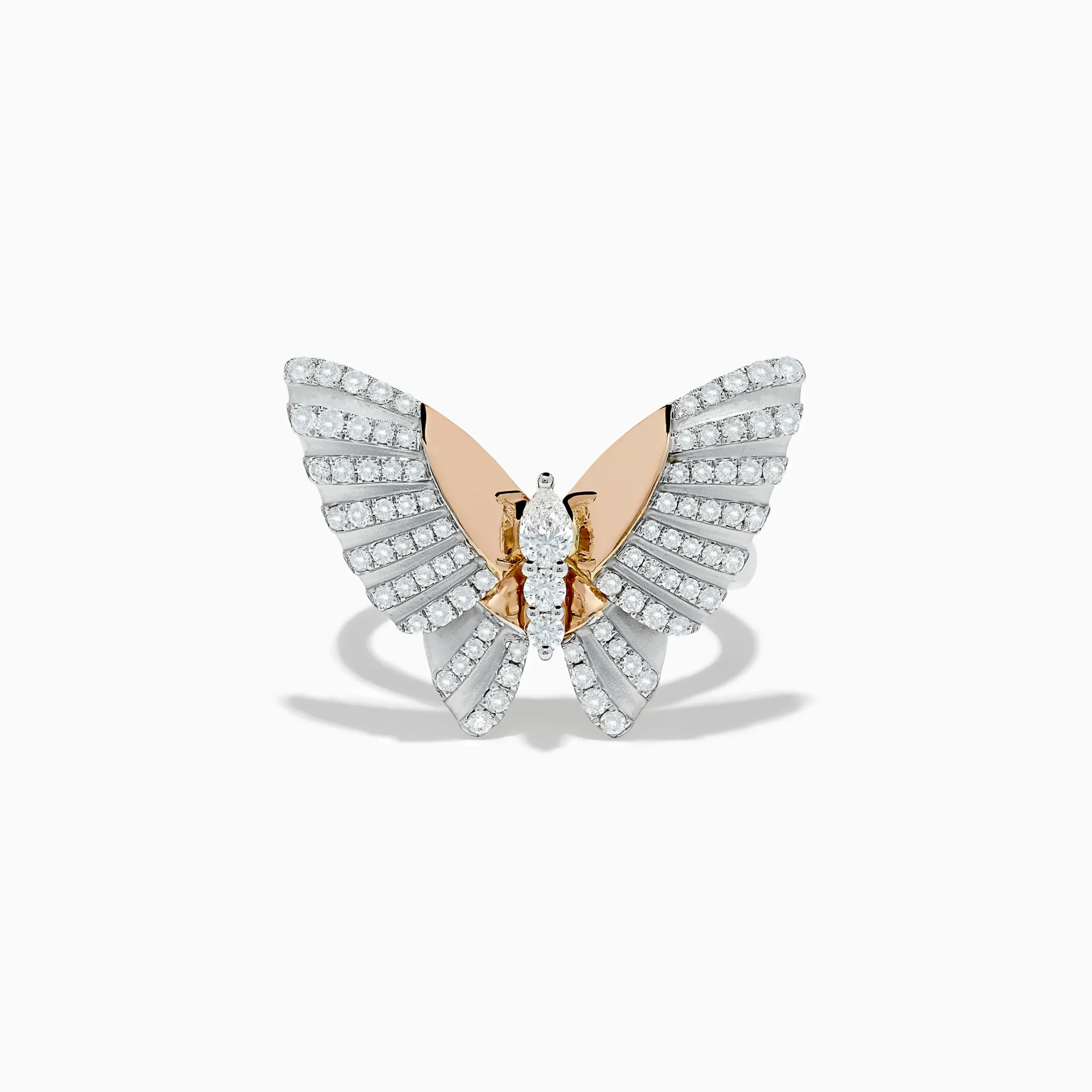 Metal:14K Gold Metal Color:Rose and WhiteStone: Multi Shape Diamond 0.68Nature 14K Two Tone Gold Diamond Butterfly Ring