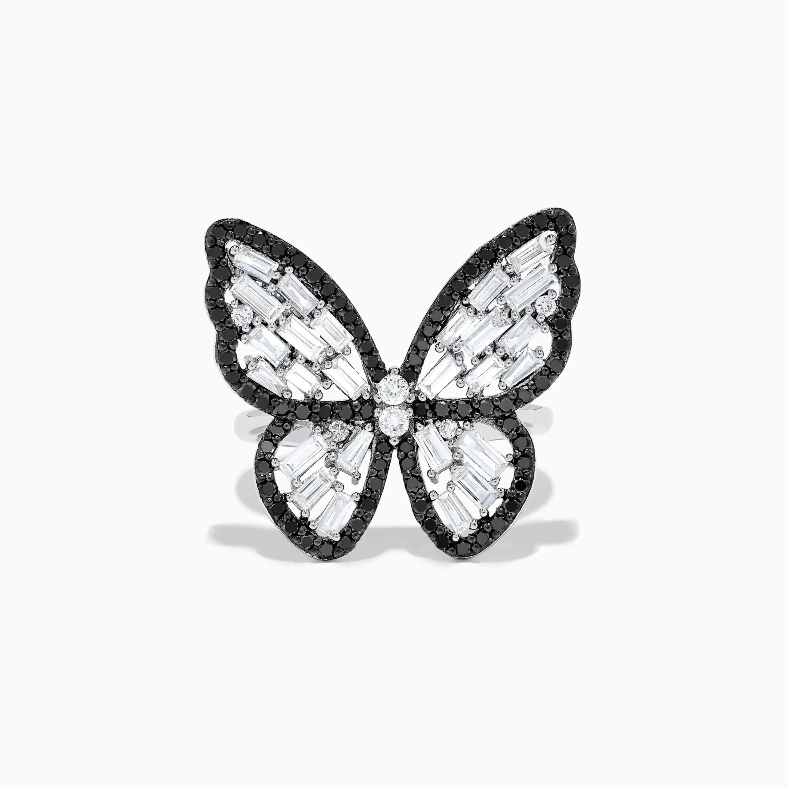 Effy Nature 14K White Gold Black and White Diamond Butterfly Ring