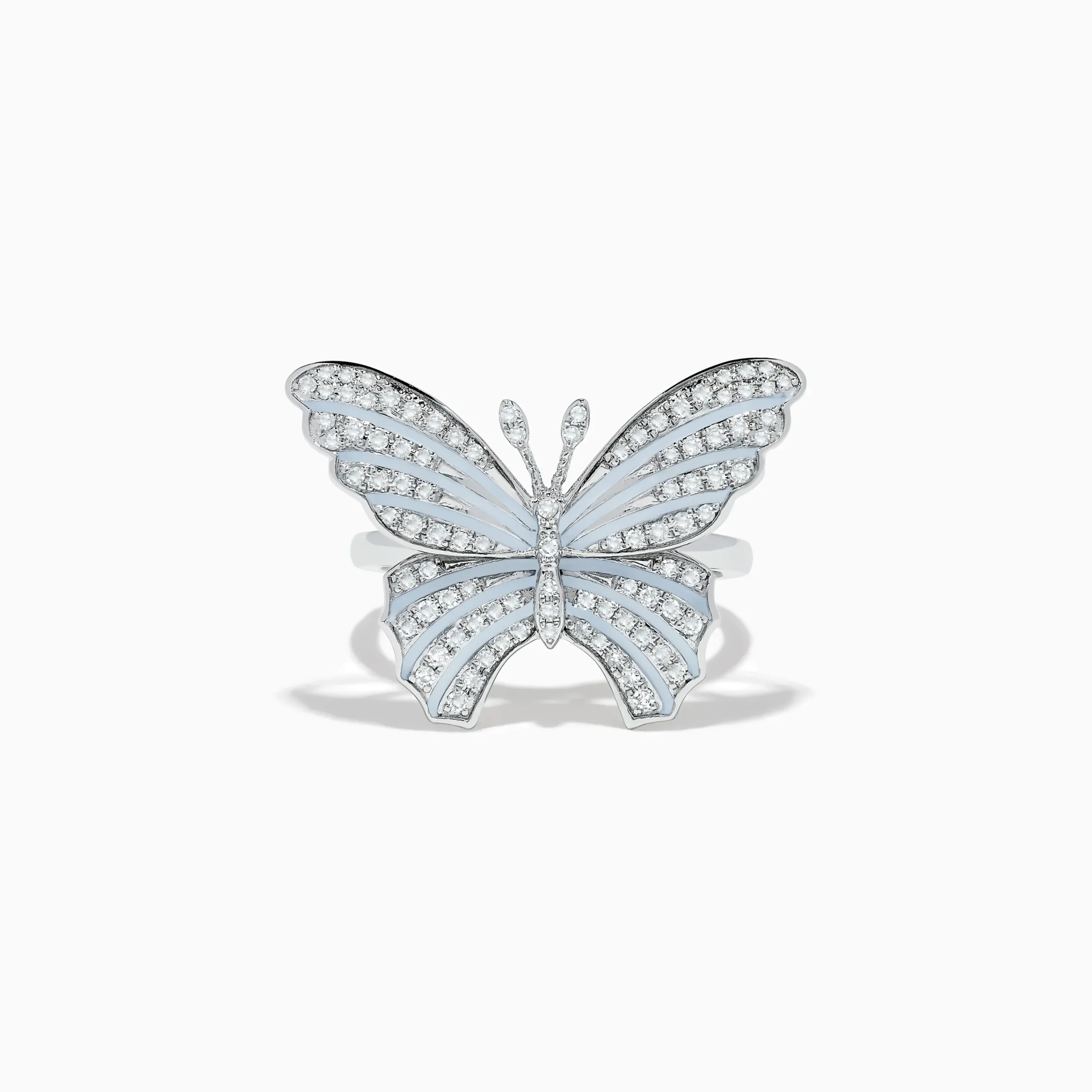 Nature 14K White Gold Diamond with White Enamel Butterfly Ring