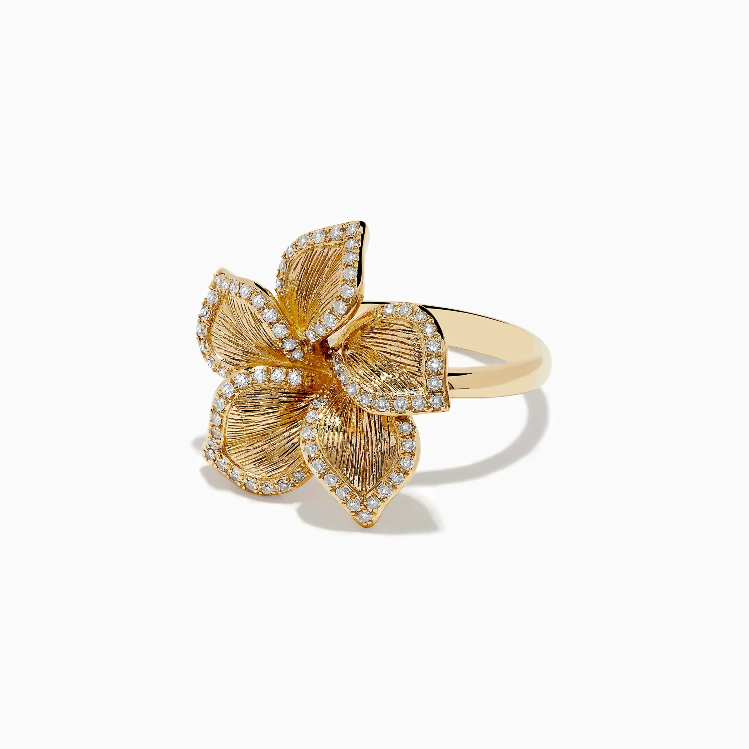 Effy Nature 14K Yellow Gold Diamond Flower Ring 0.31 TCW