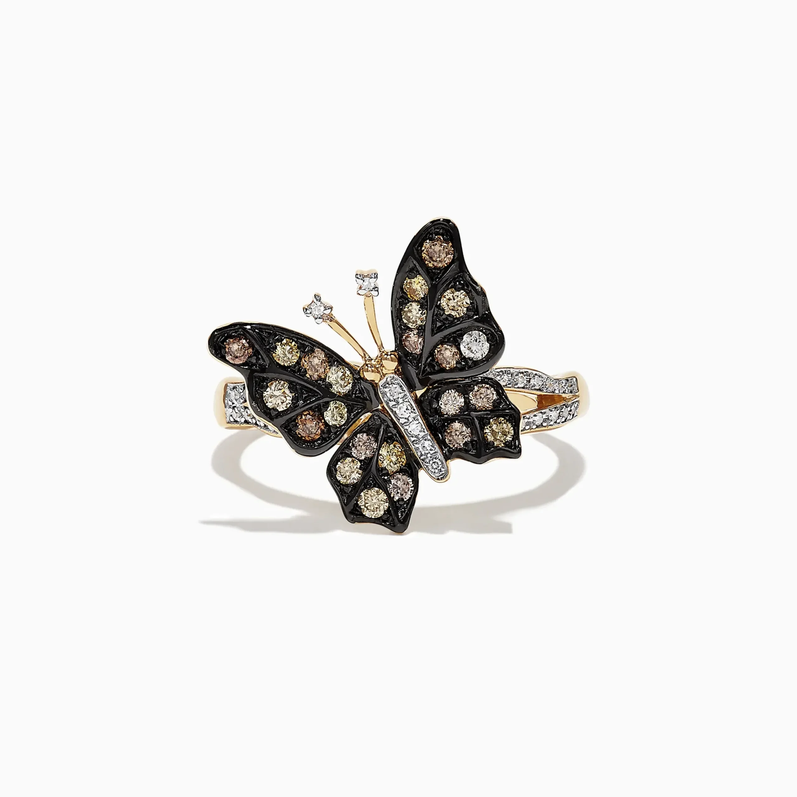Effy Nature 14K Yellow Gold Espresso & White Diamond Butterfly Ring, 0.45 TCW