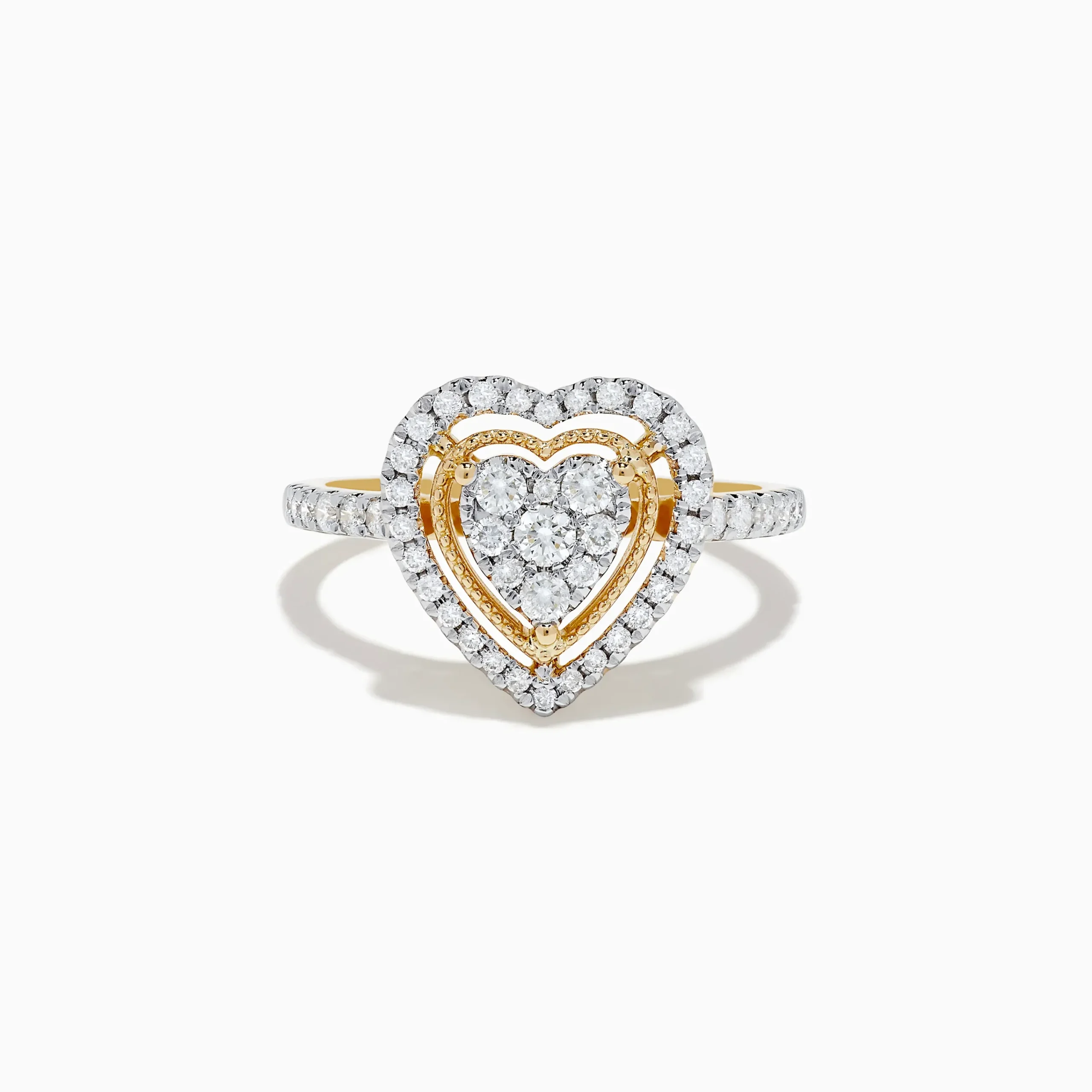 Effy Novelty 14K Yellow Gold Heart Diamond Ring 0.57 TCW