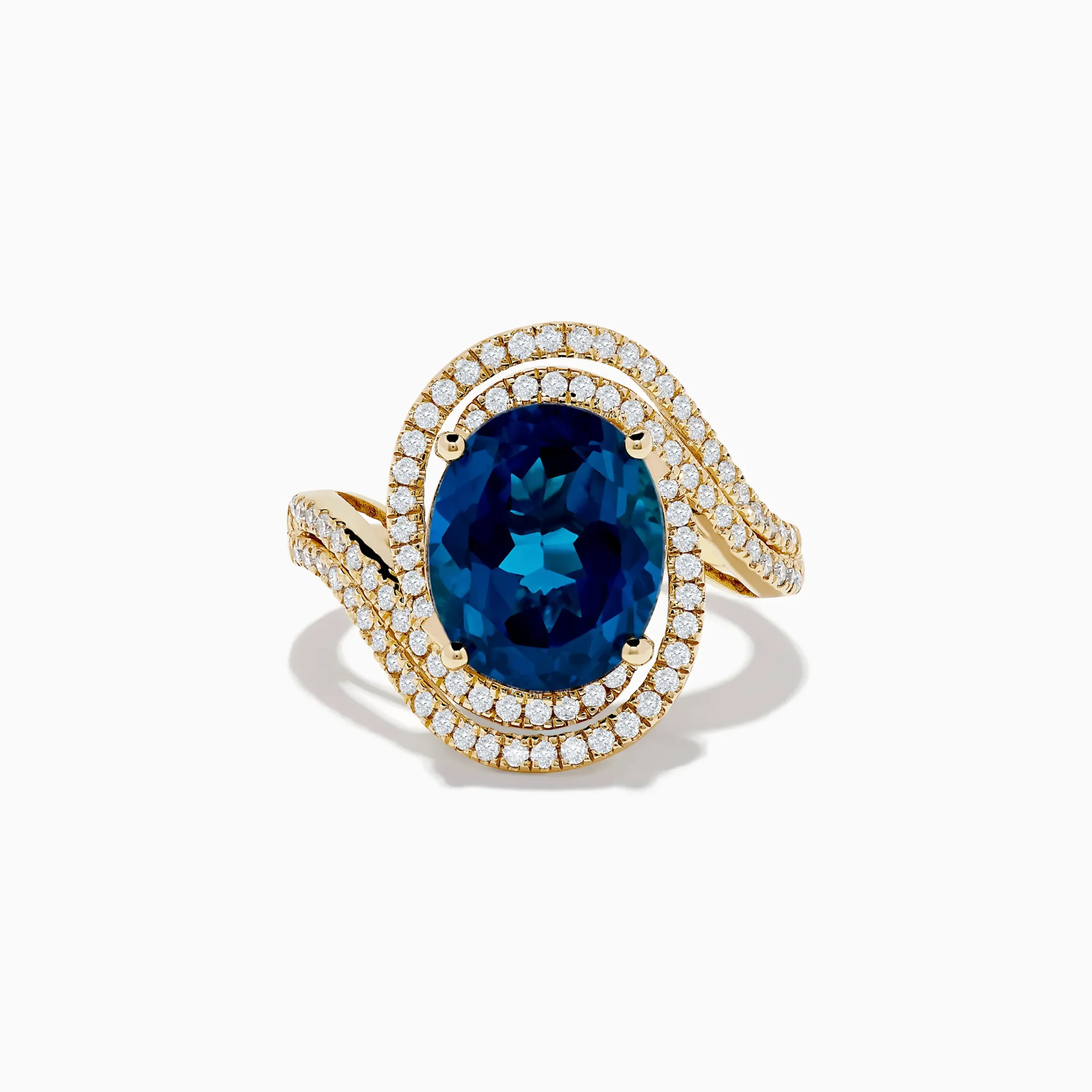 Ocean Blue 14K Gold London Blue Topaz and Diamond Ring