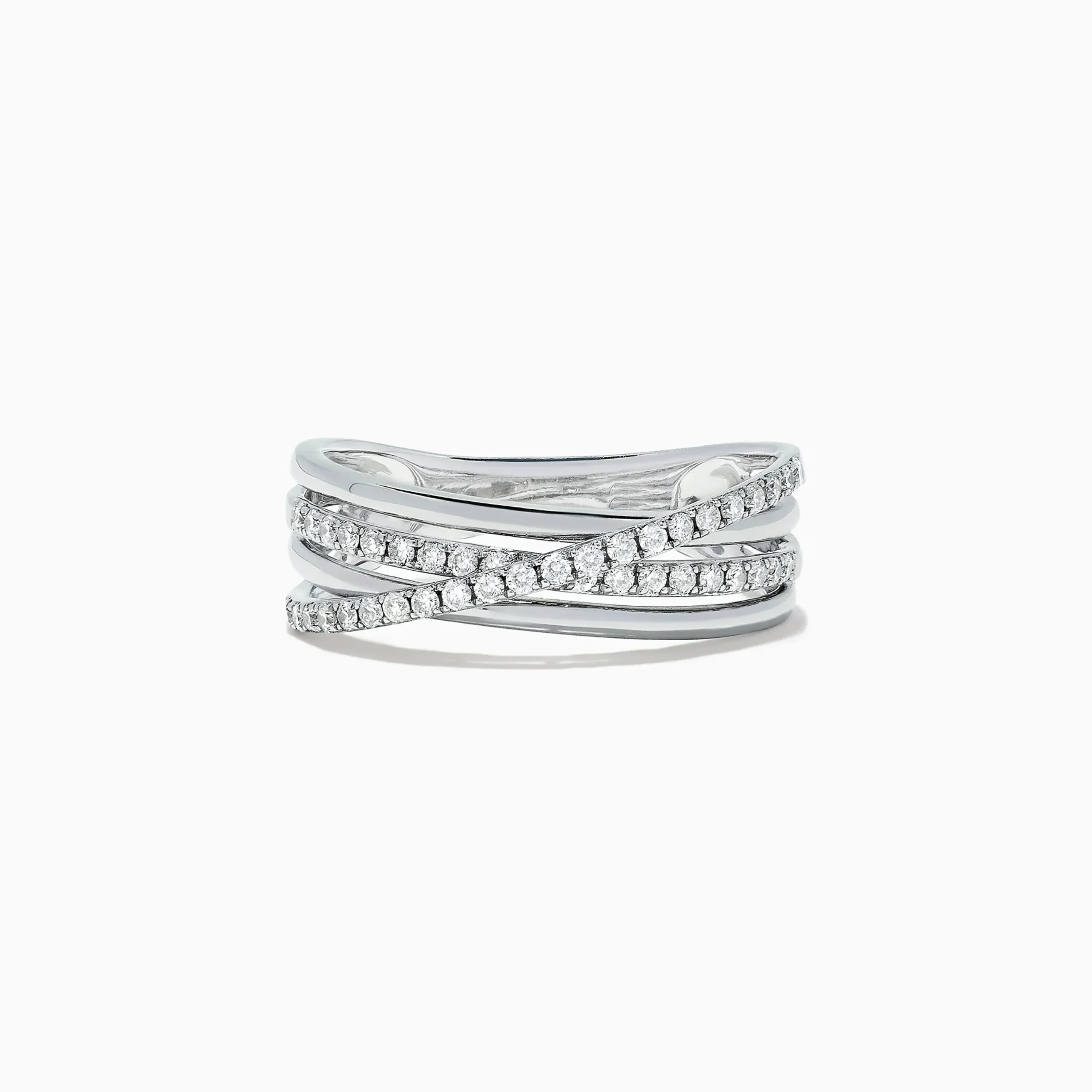 Effy Pave Classica 14K White Gold Diamond Cross Over Ring, 0.29 TCW