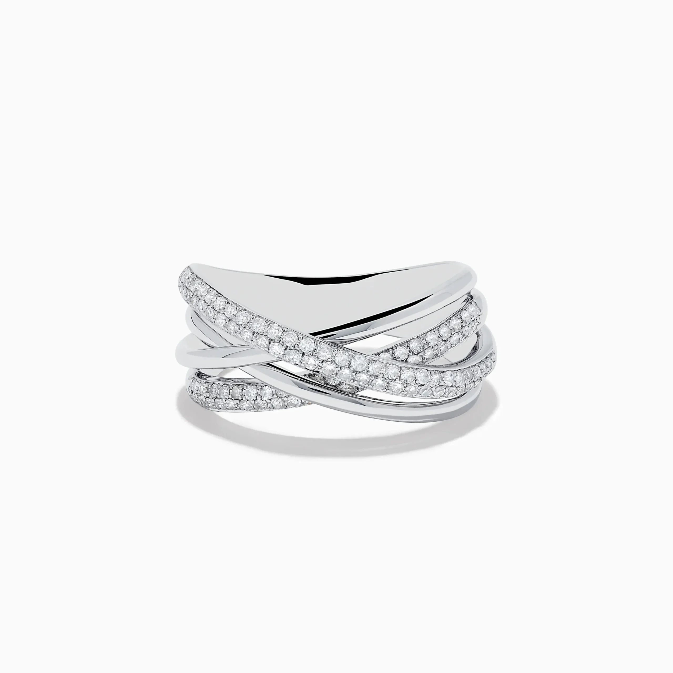 Effy Pave Classica 14K White Gold Diamond Cross Over Ring, 0.40 TCW