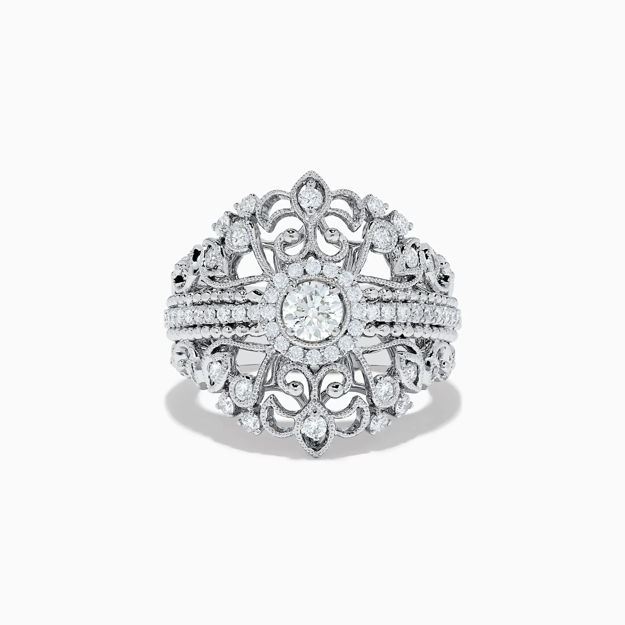 Metal:14K Gold Metal Color:WhiteStone: Round Diamond 0.97Effy Pave Classica 14K White Gold Diamond Ring