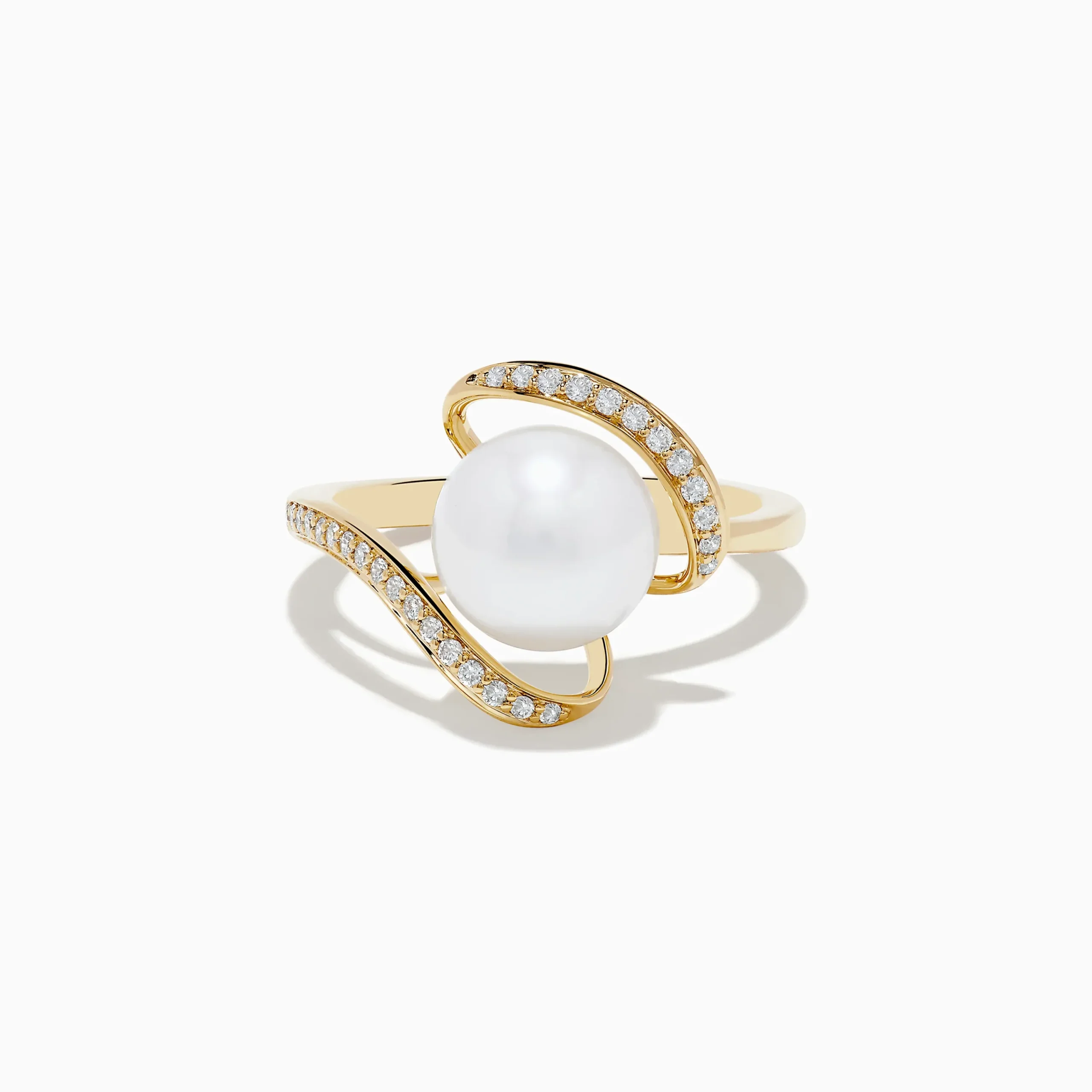 Effy Pearl 14K Yellow Gold Pearl and Diamond Ribbon Ring