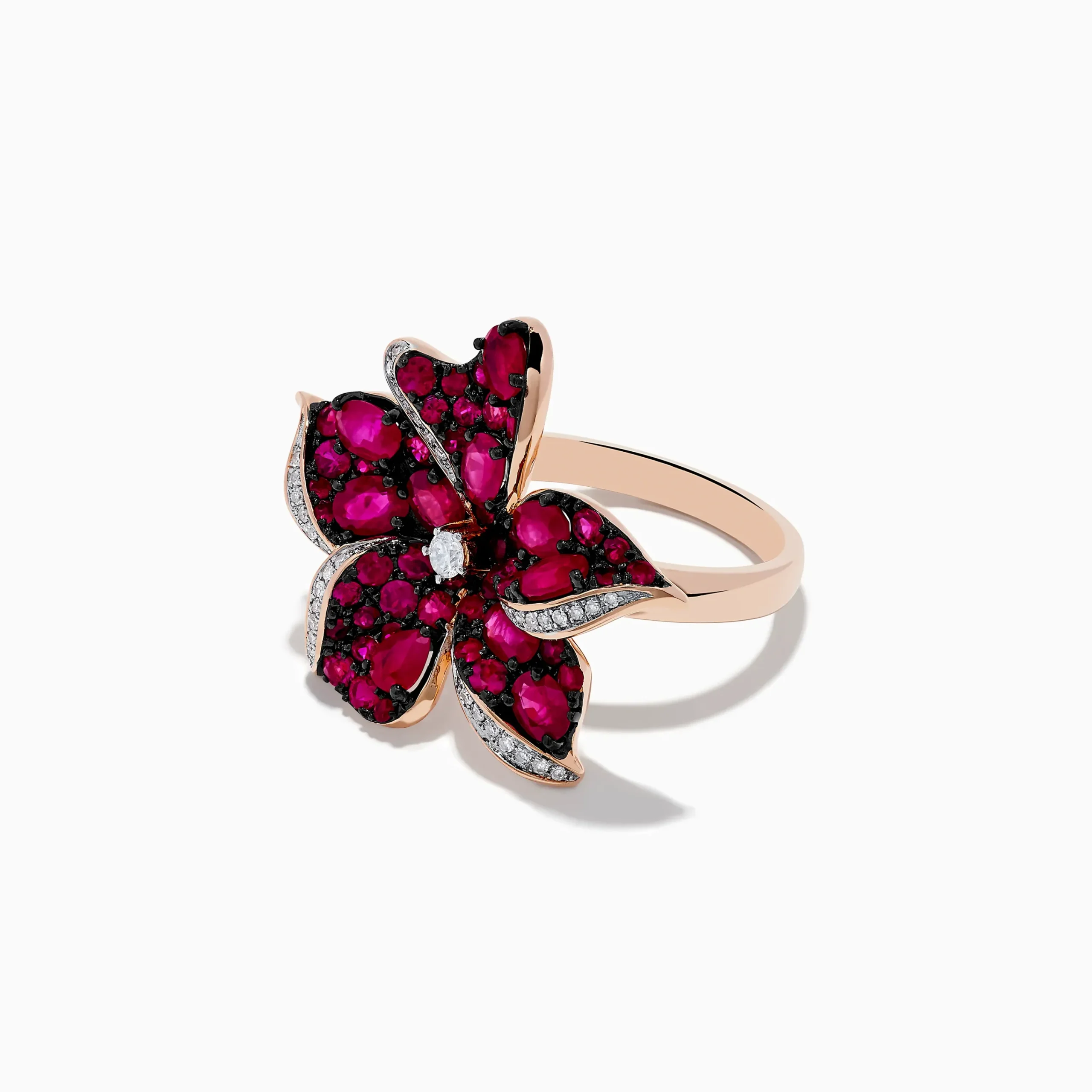 Ruby Royale 14K Rose Gold Ruby and Diamond Flower Ring