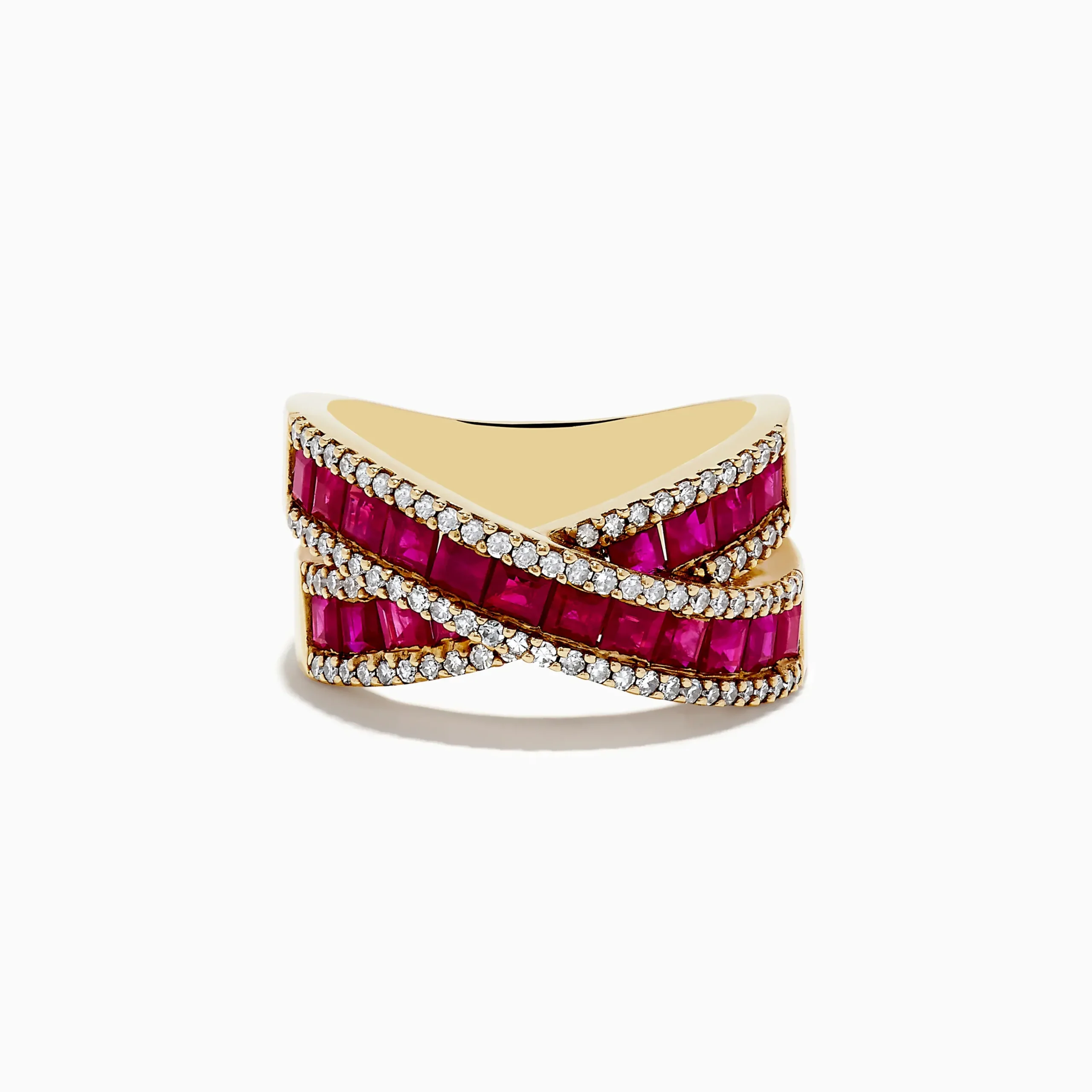 Effy Ruby Royale 14K Yellow Gold Ruby Criss Cross Ring, 2.73 TCW