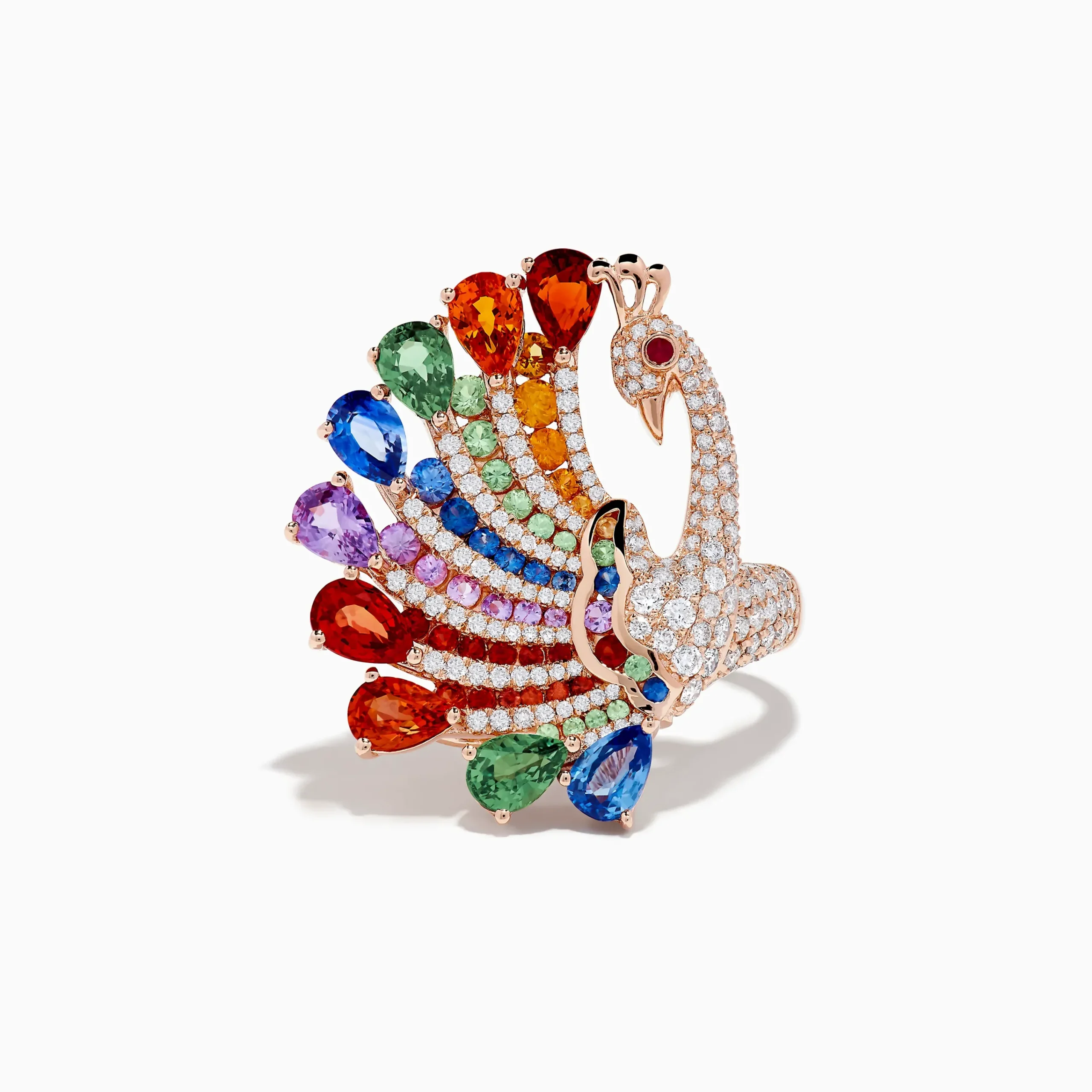 Effy Safari 14K Rose Gold Multi Sapphire Peacock Ring