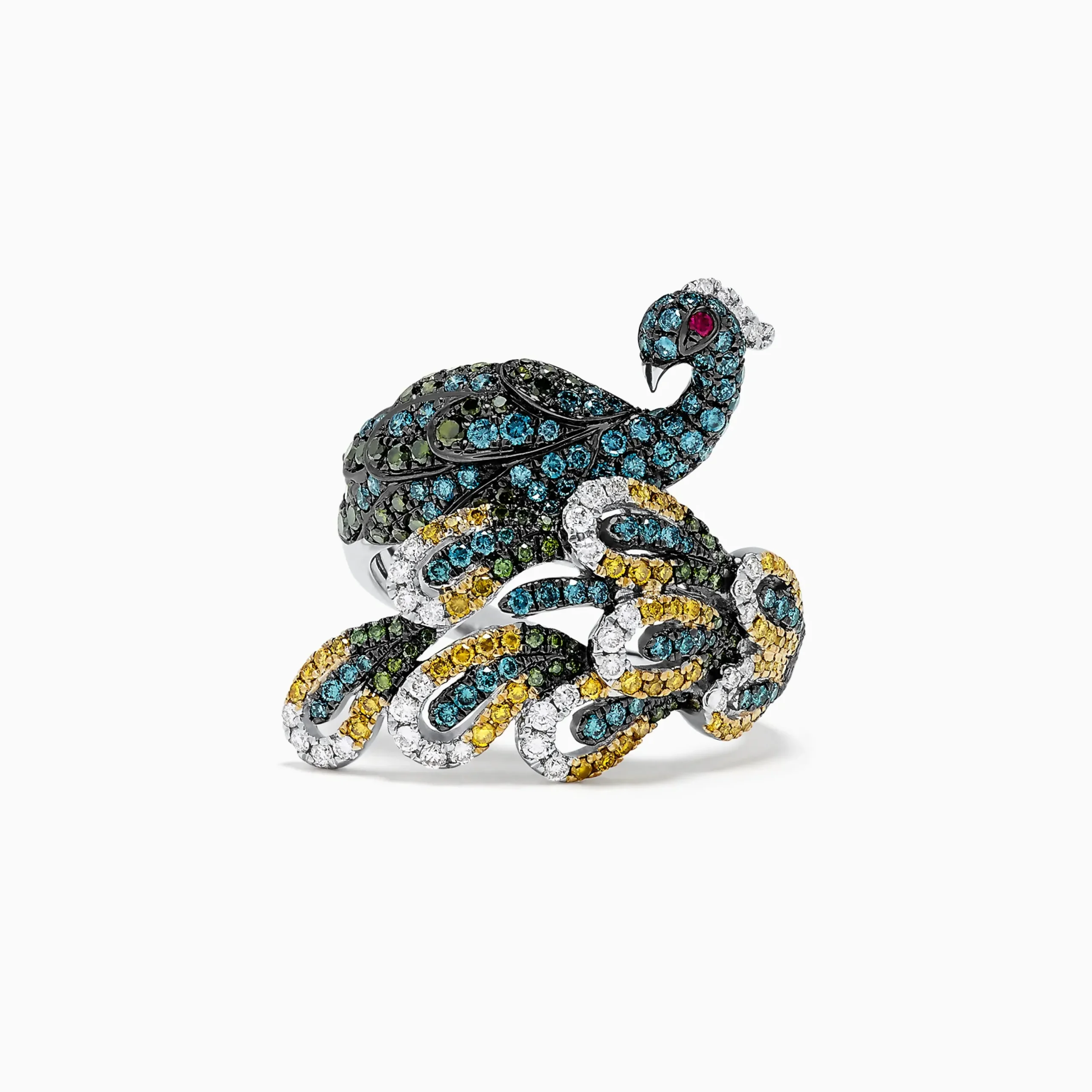 Effy Safari 14K White Gold Mix Diamonds and Ruby Peacock Ring, 1.50 TCW
