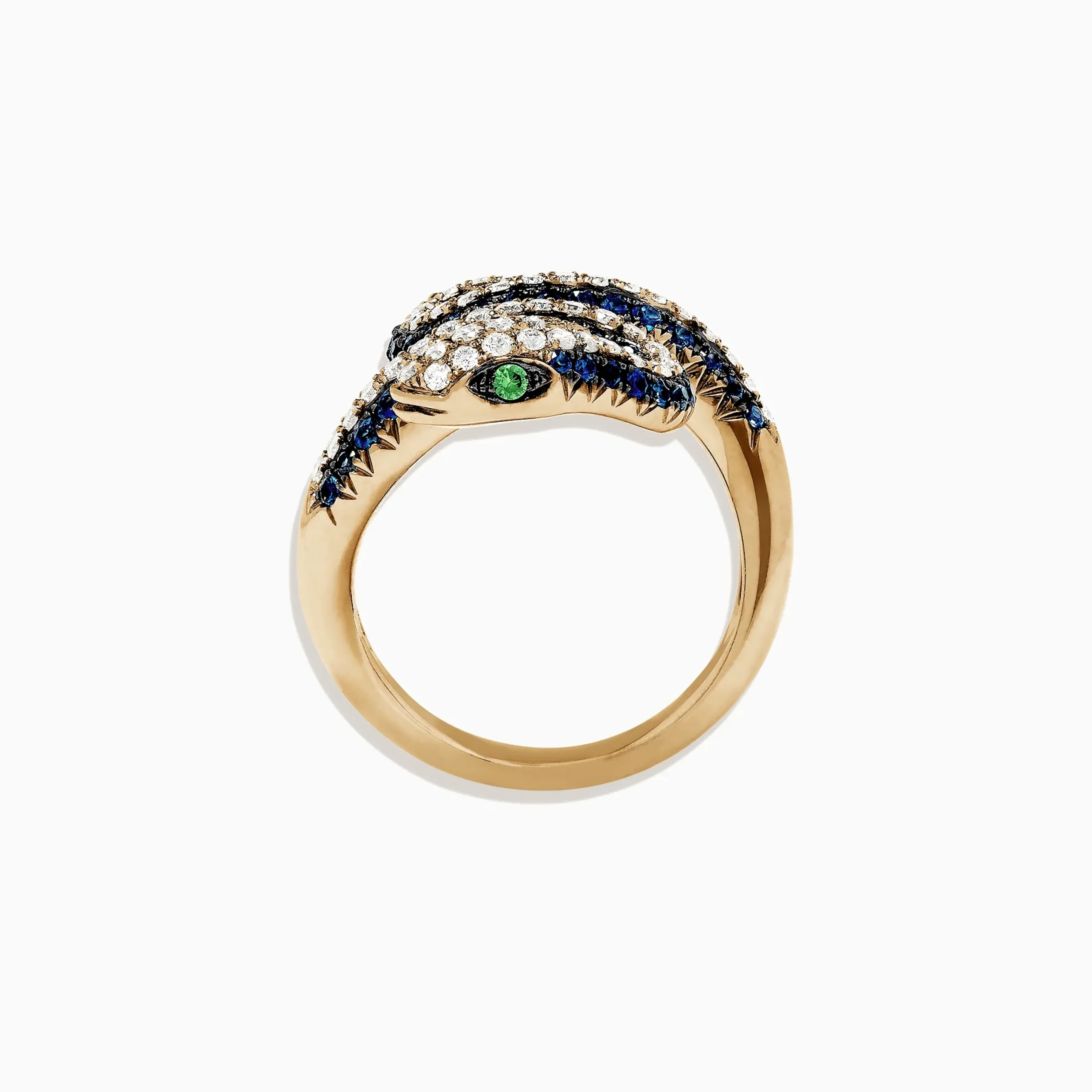 Effy Safari 14K Yellow Gold Blue Sapphire and Diamond Snake Ring, 1.49 TW