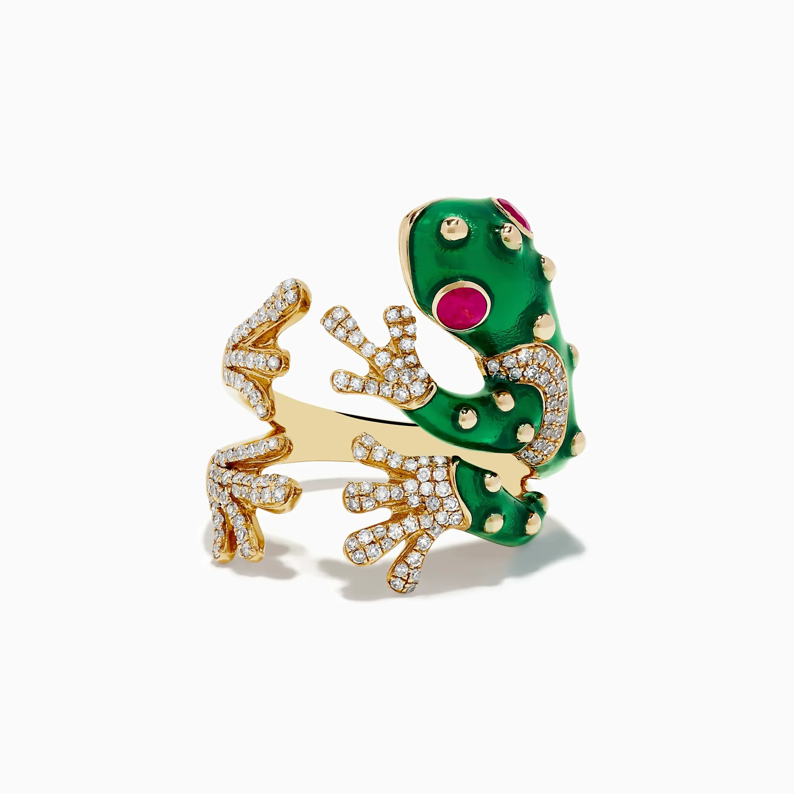 Effy Safari 14K Yellow Gold Ruby and Diamond Frog Ring