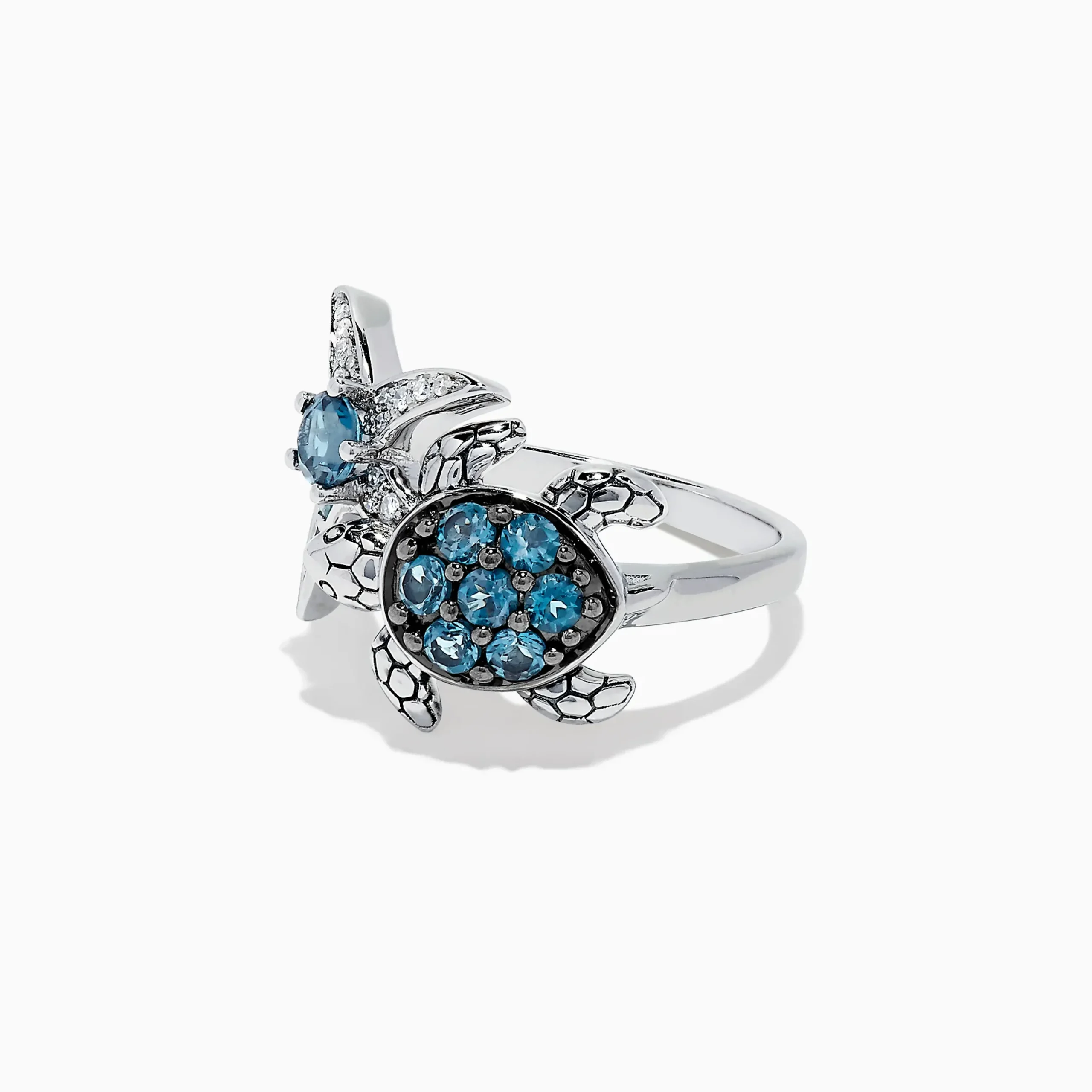 Effy Seaside S. Silver Topaz & Diamond Turtle and Starfish Ring, 1.06 TCW