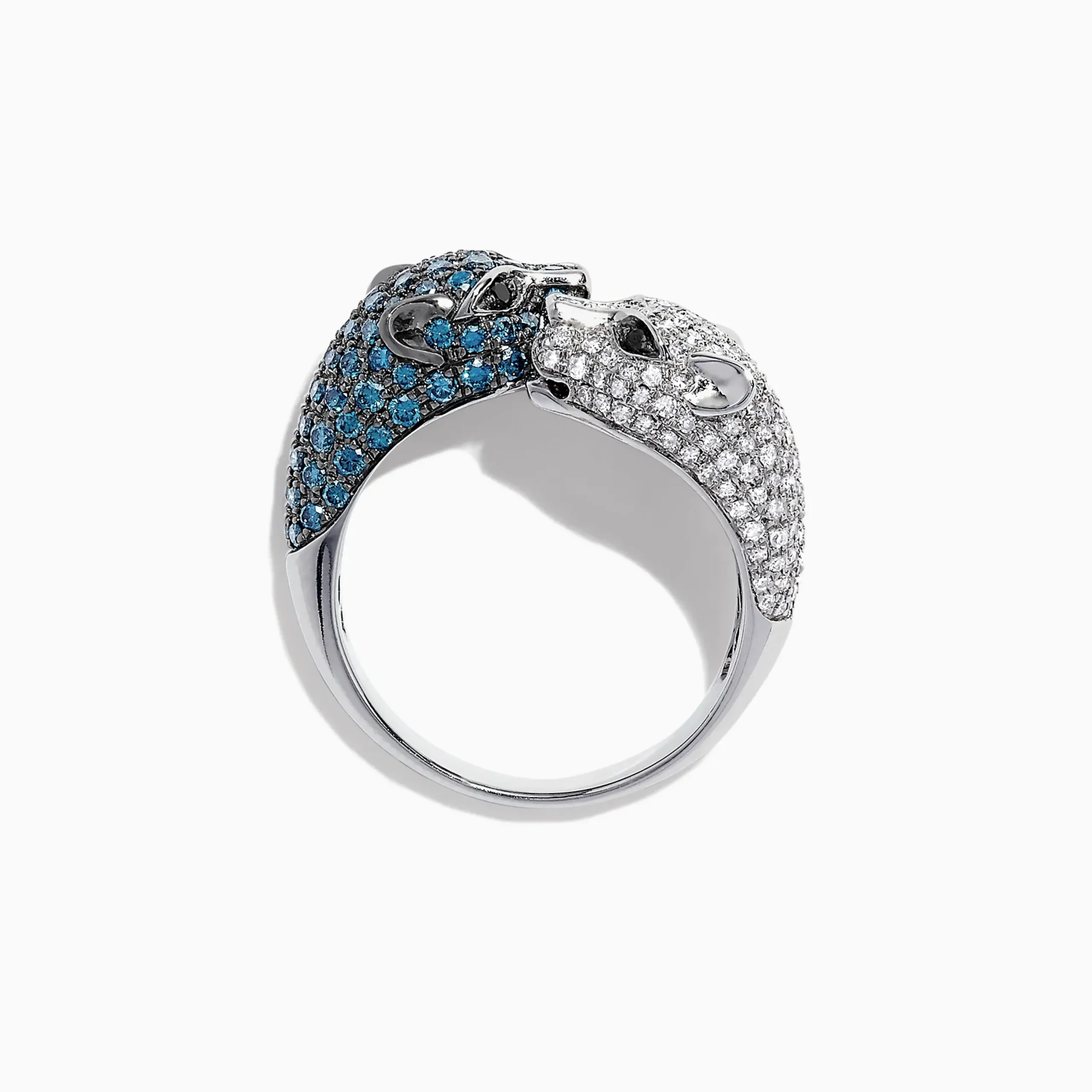 Effy Signature 14K White Gold Blue and White Diamond Panther Ring, 1.48 TCW