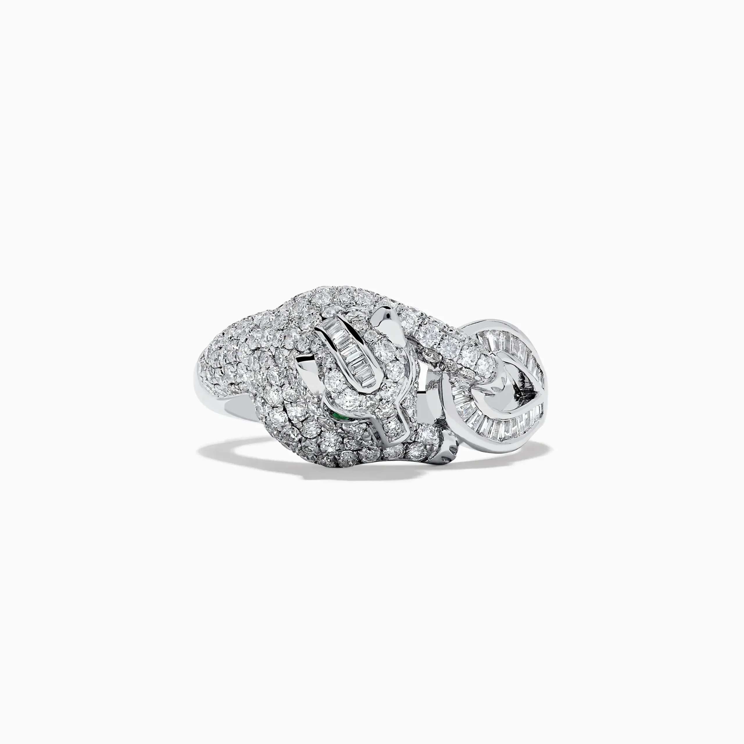 Signature 14K White Gold Emerald and Diamond Panther Ring