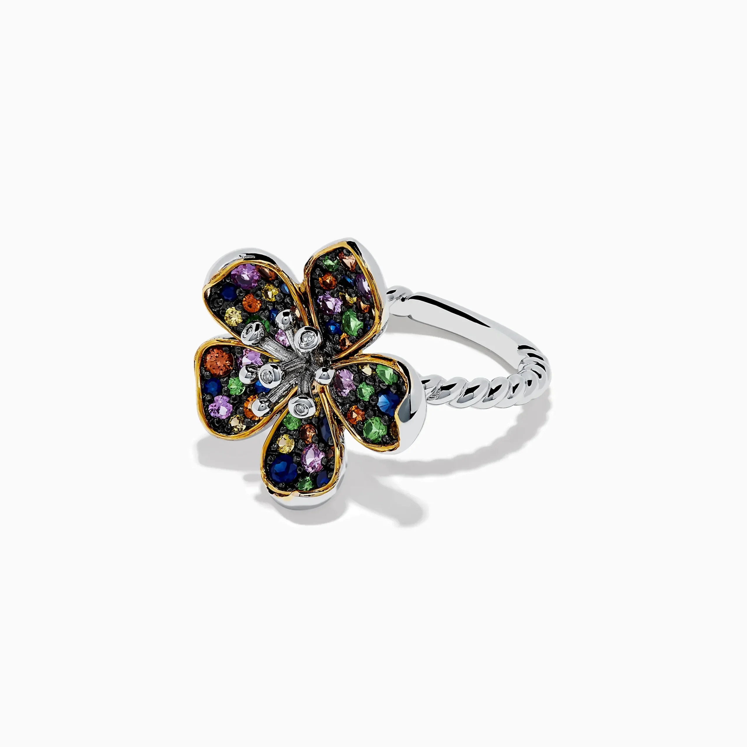 Effy Splash Sterling Silver Diamond and Mulit Sapphires Flower Ring