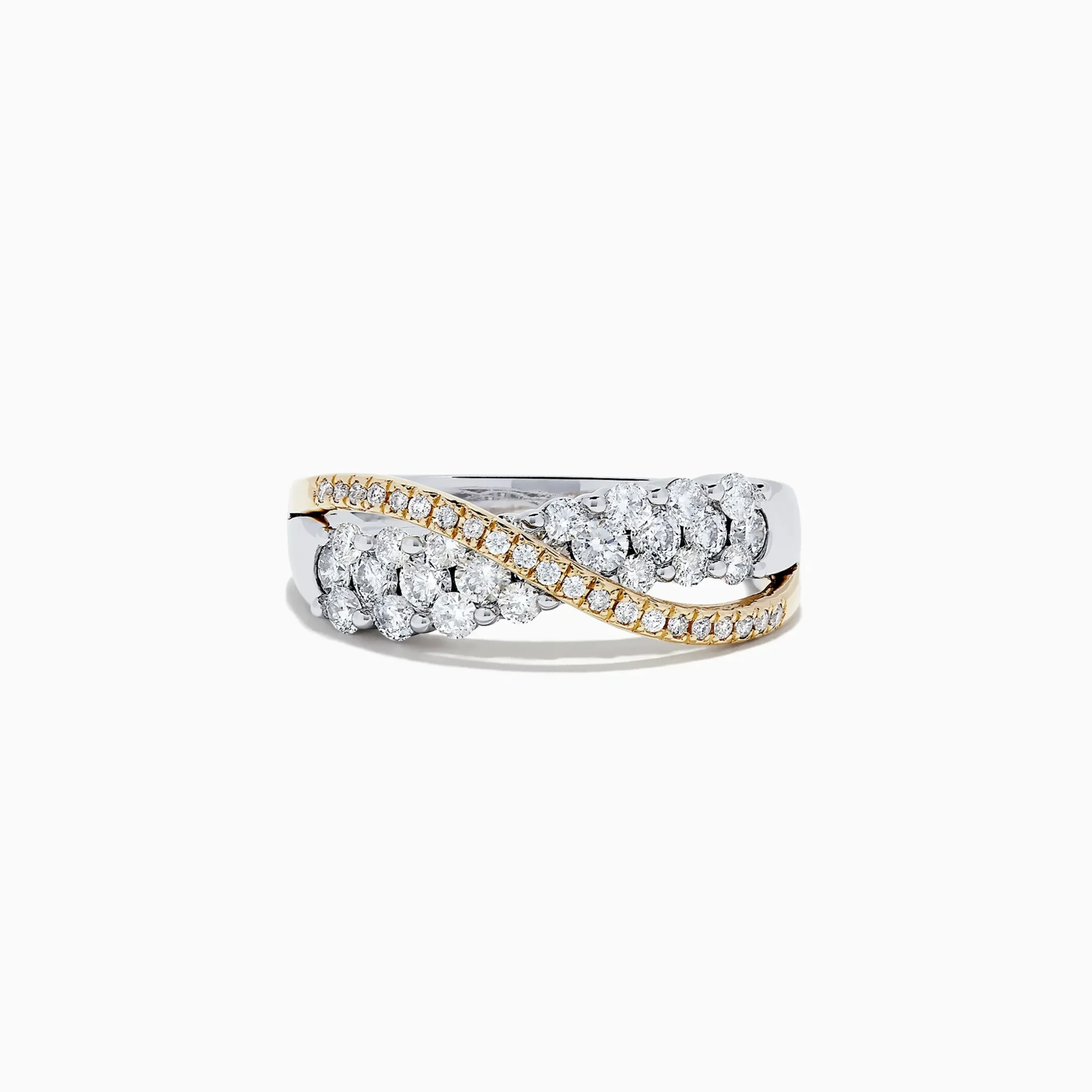 14K White and Yellow Gold Diamond Crossover Ring, 1.00 TCW