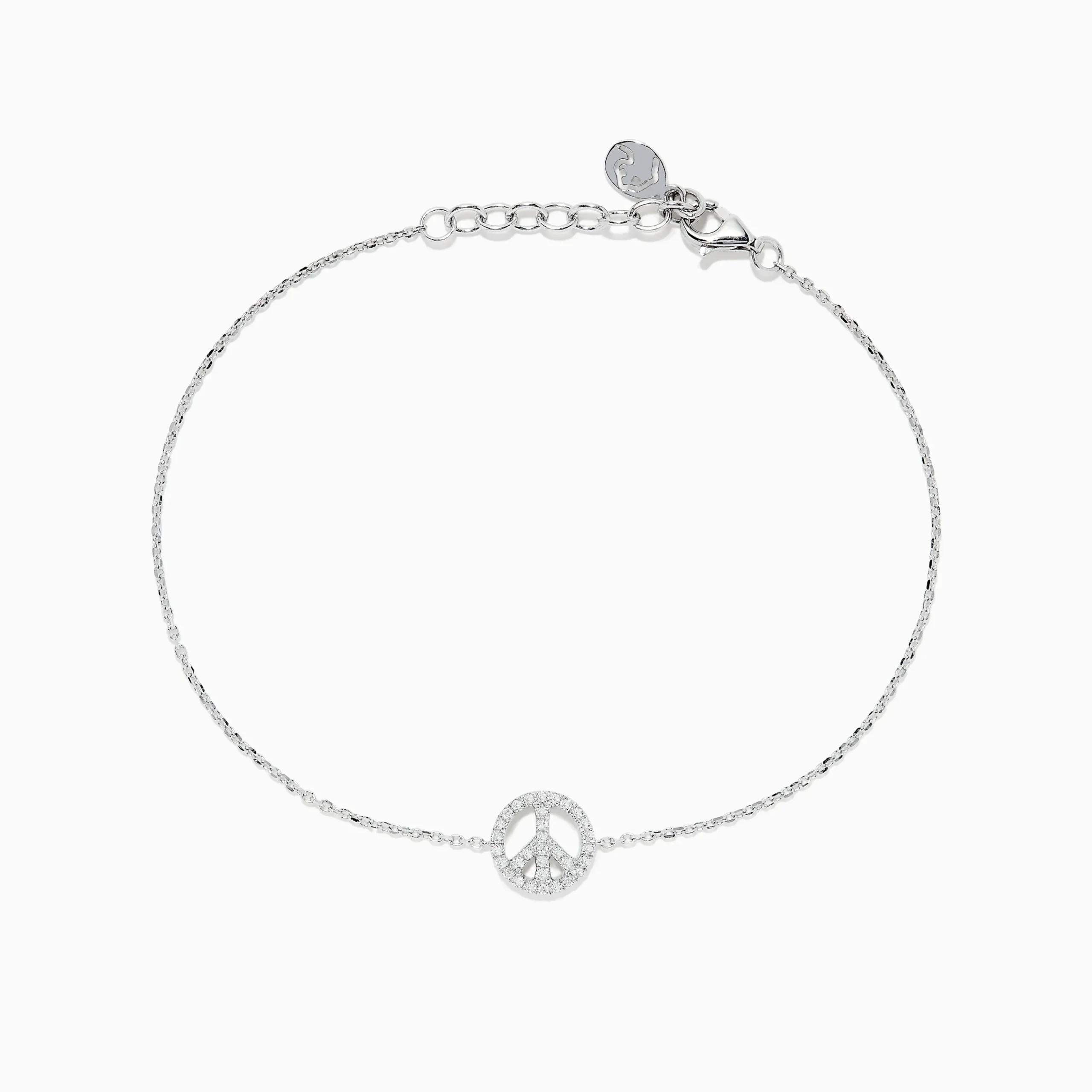 Effy 925 Sterling Silver Diamond Peace Sign Bracelet
