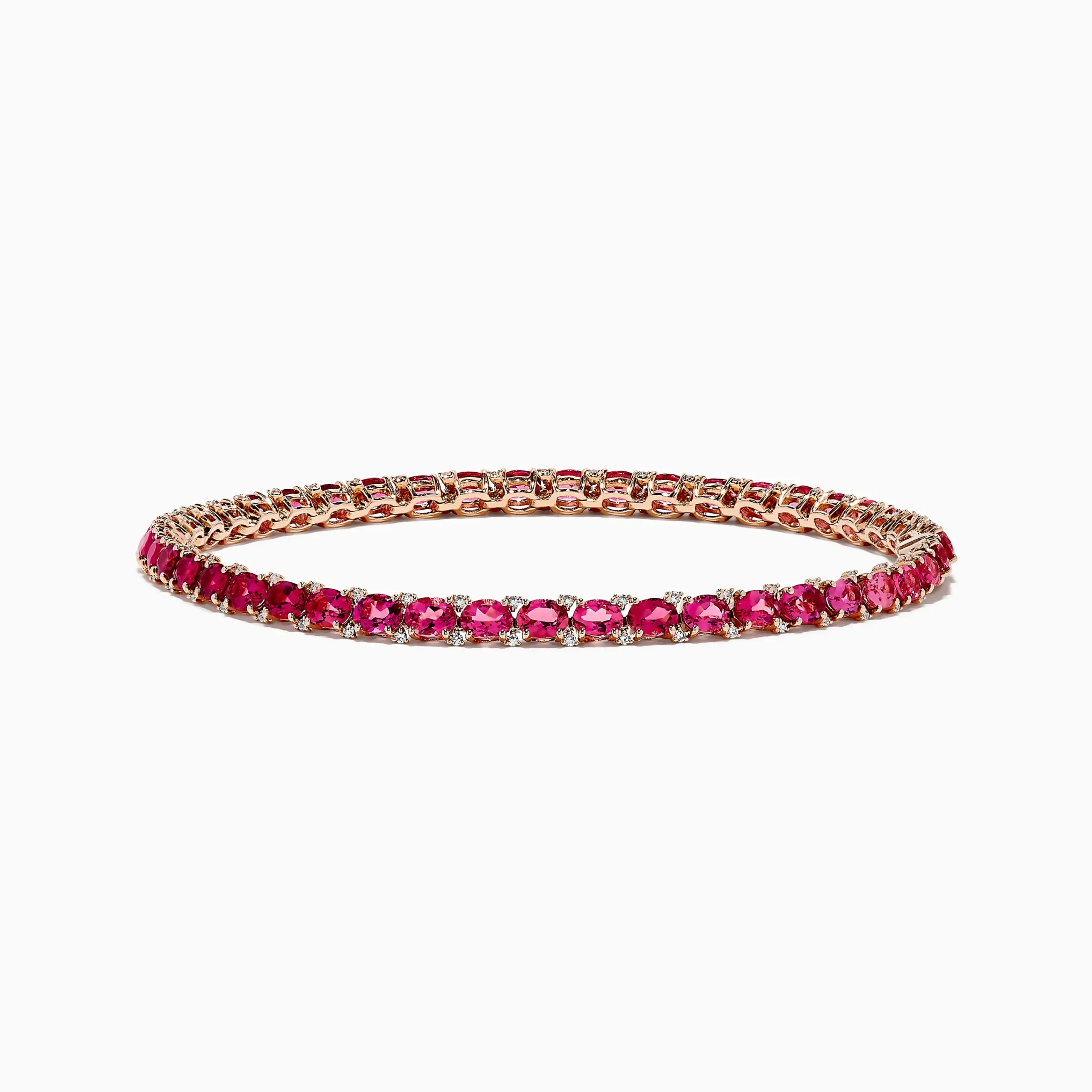 Effy 14k Rose Gold Oval Pink Tourmaline and Ruby Tennis Bracelet 6.56 TCW