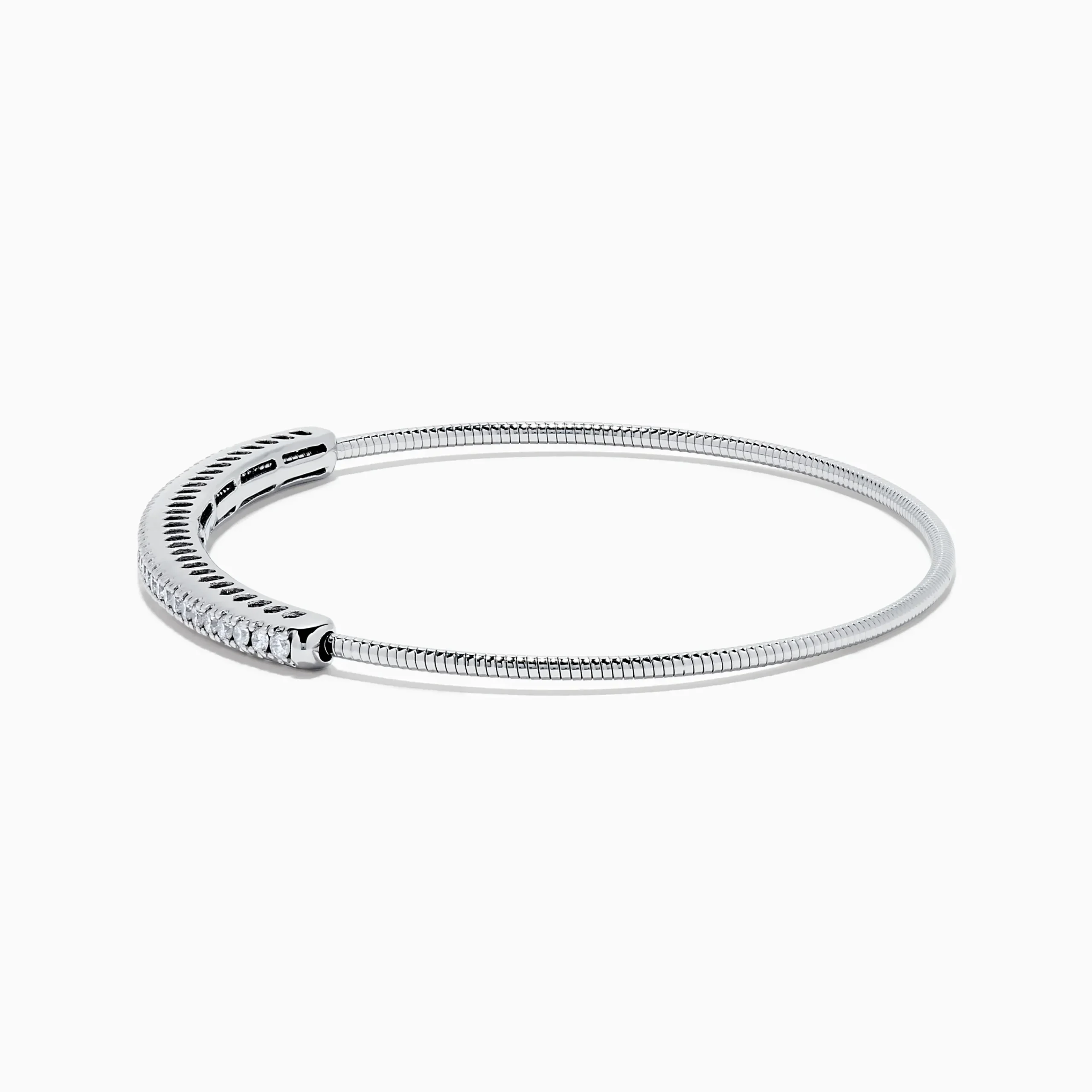 Metal:14K Gold Metal Color:WhiteStone: Round Diamond 0.614K White Gold Flexible Diamond Bangle