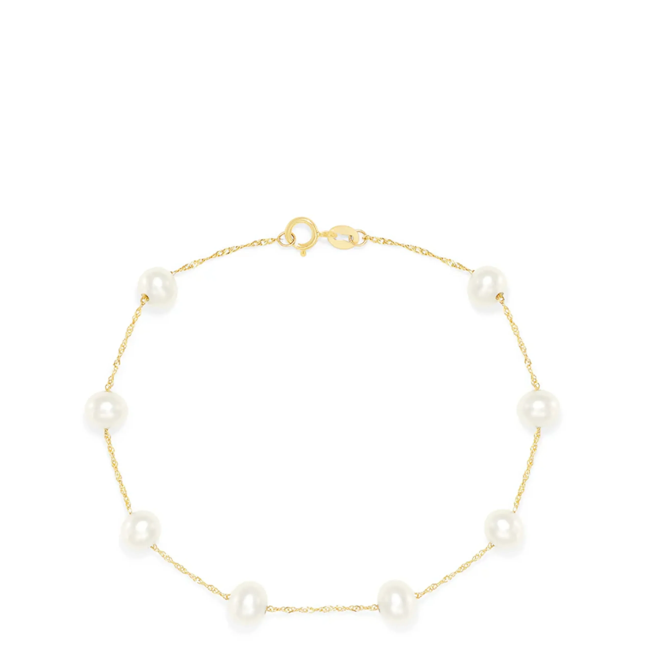 Metal:14K Gold Metal Color:YellowStone: PearlEffy 14K Yellow Gold Cultured Fresh Water Pearl Station Bracelet