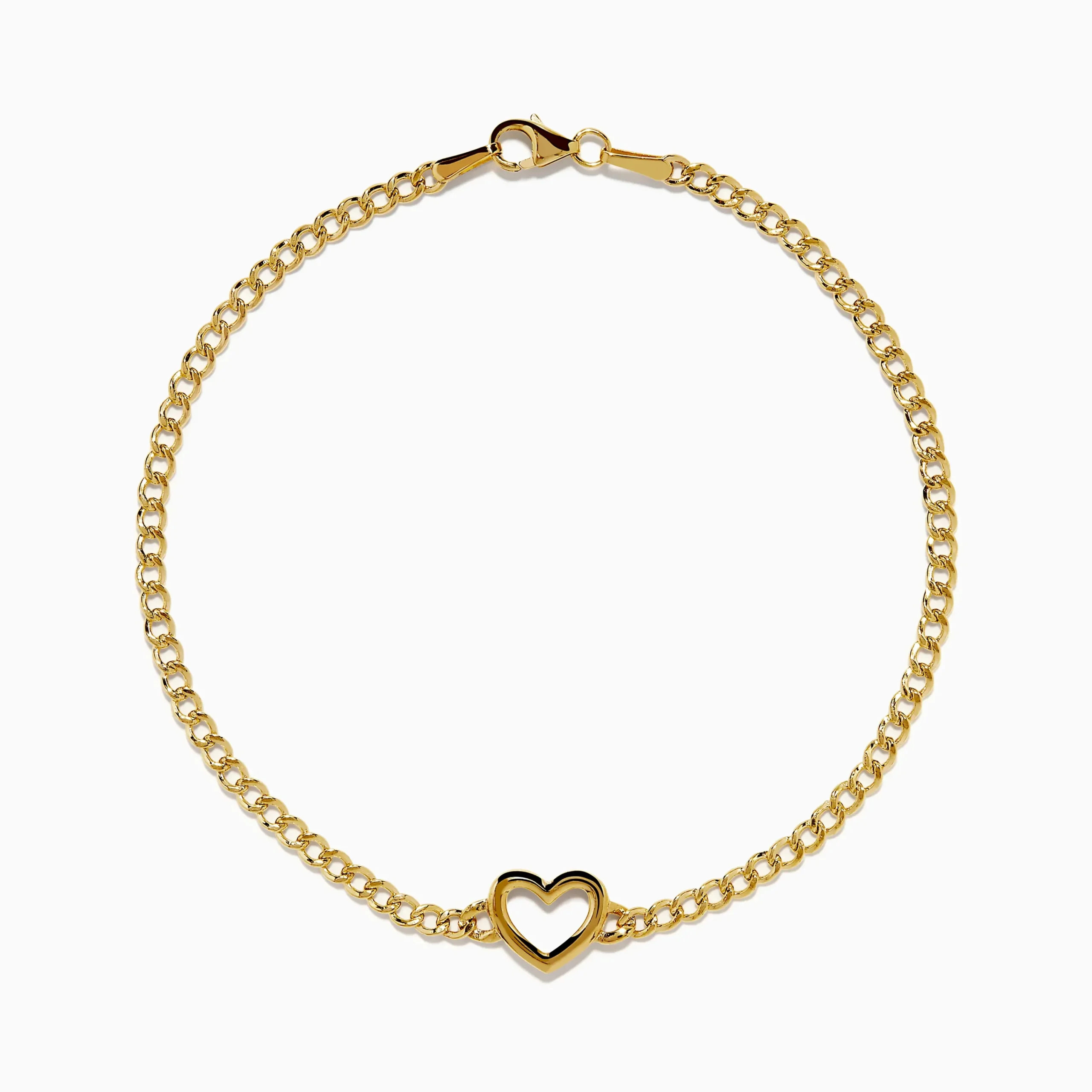 Metal:14K Gold Metal Color:Yellow 14K Yellow Gold Heart Curb Chain Bracelet