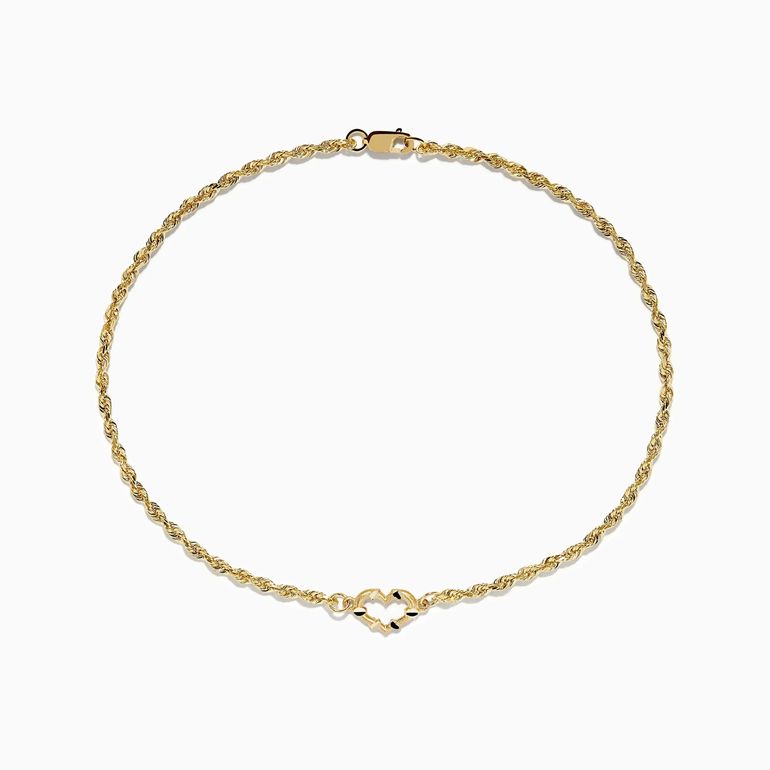 14K Yellow Gold Open Heart Solid Glitter Chain Ankle Bracelet 10″