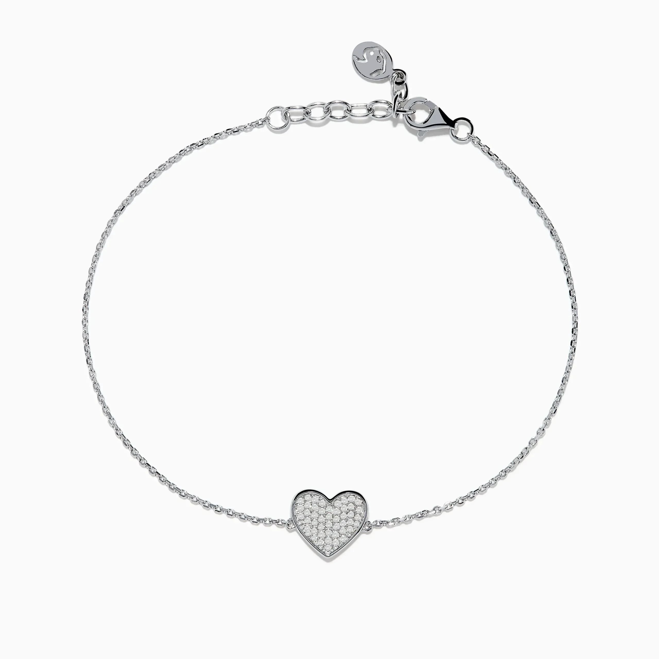 Metal:Sterling Silver Metal Color:WhiteStone: Round Diamond 0.13925 Sterling Silver Diamond Heart Bracelet