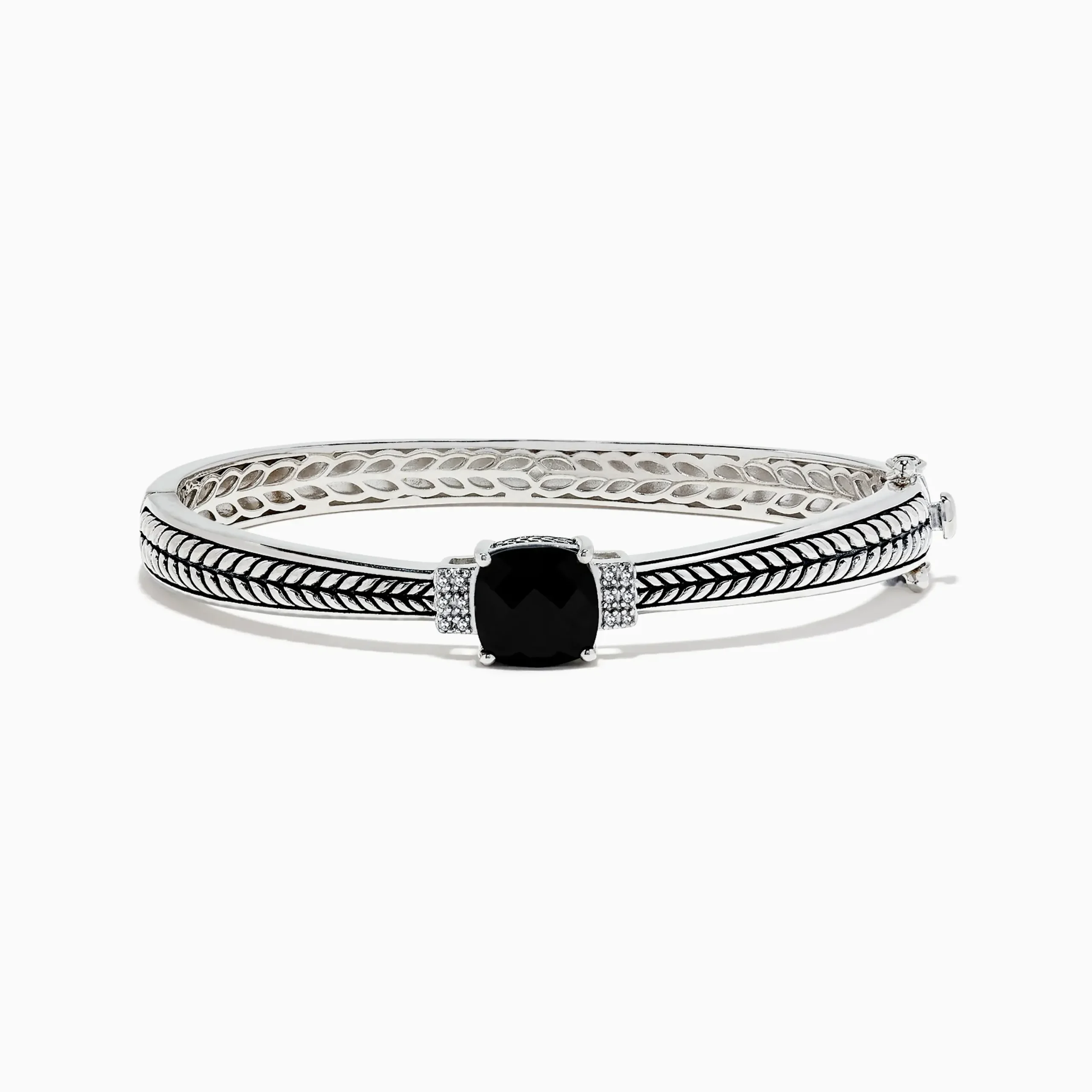 Effy 925 Sterling Silver Onyx and Diamond Bangle, 4.26 TCW