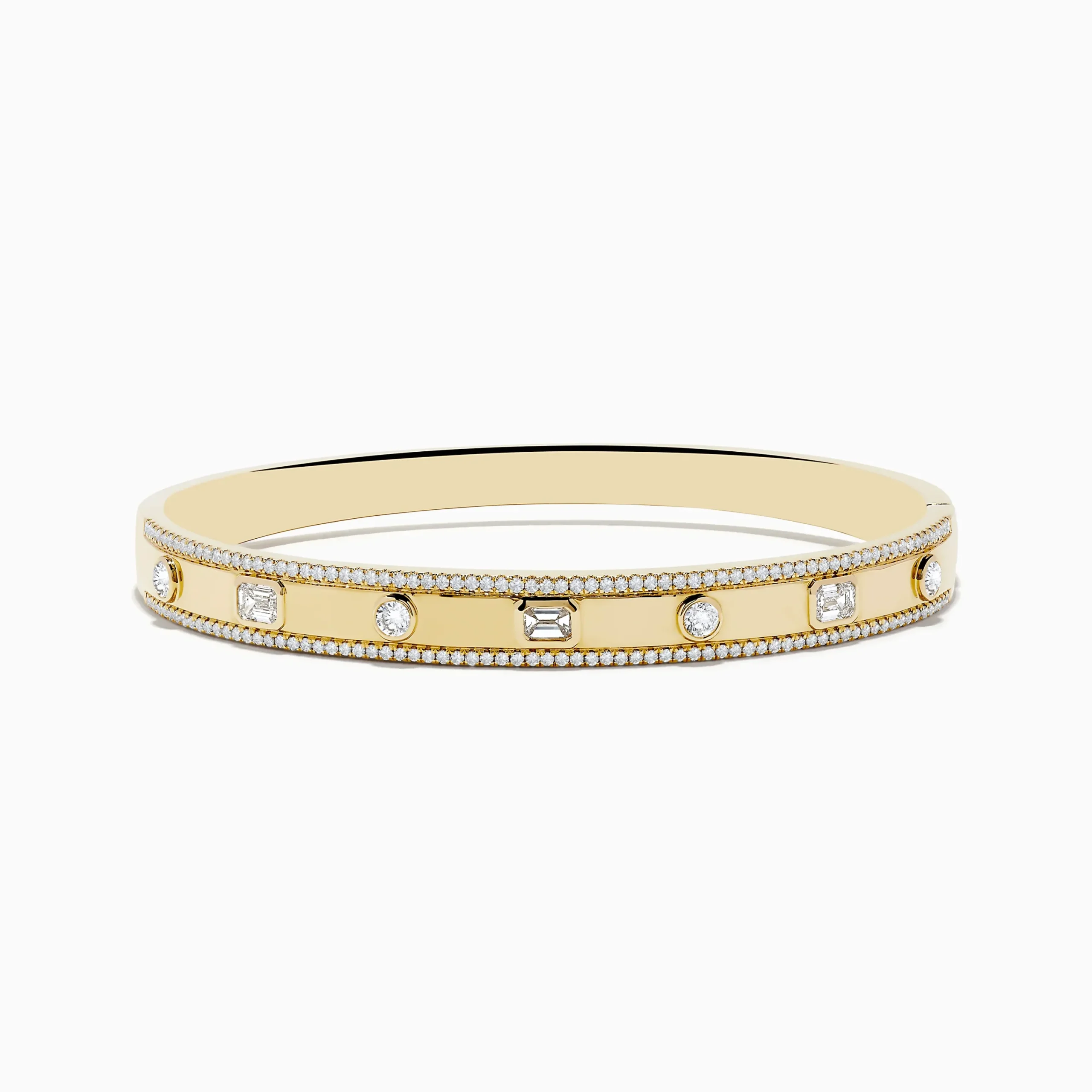 Metal:14K Gold Metal Color:YellowStone: Multi Shape Diamond 1.72D’Oro 14K Yellow Gold Bezel Set Diamond Bangle 1.72 TCW