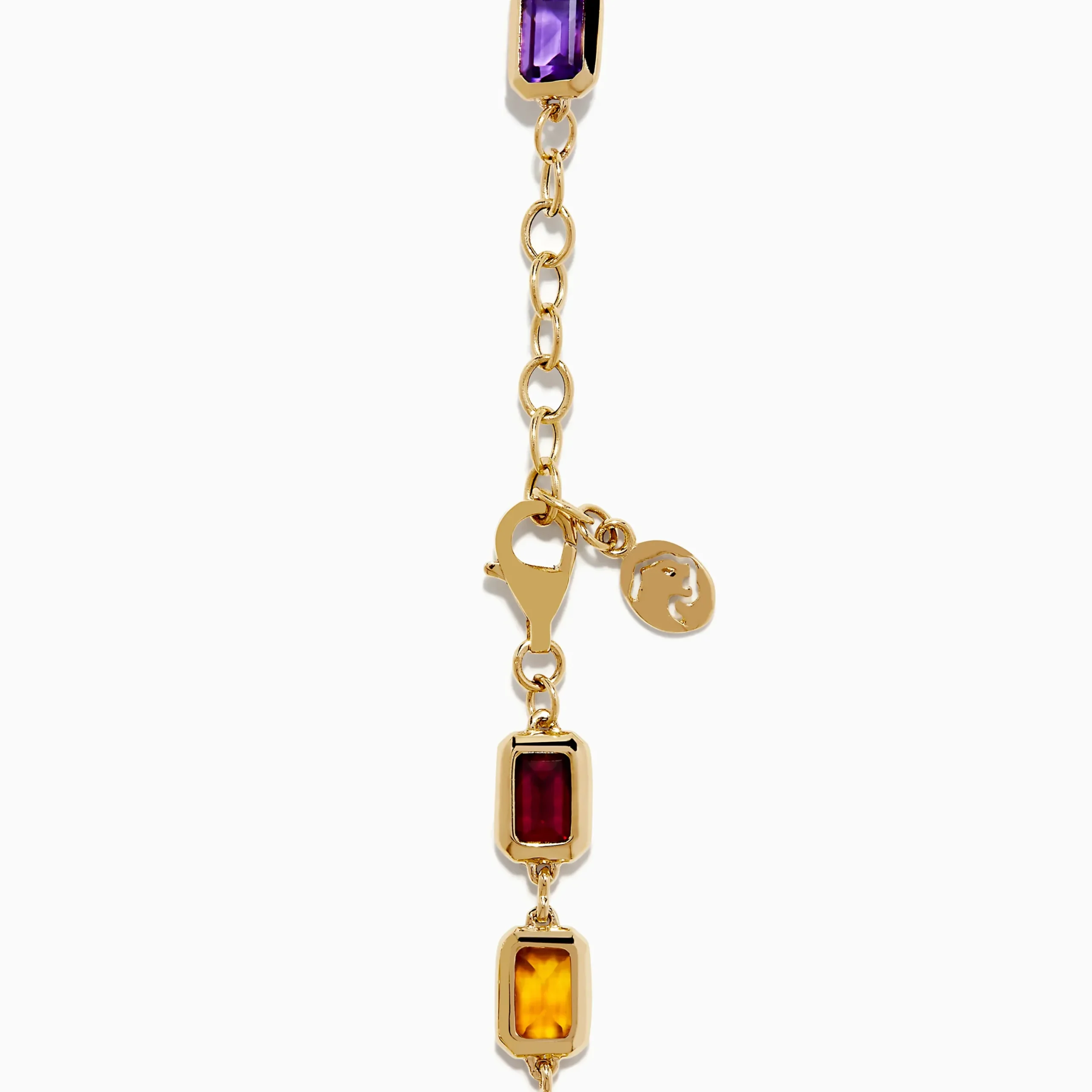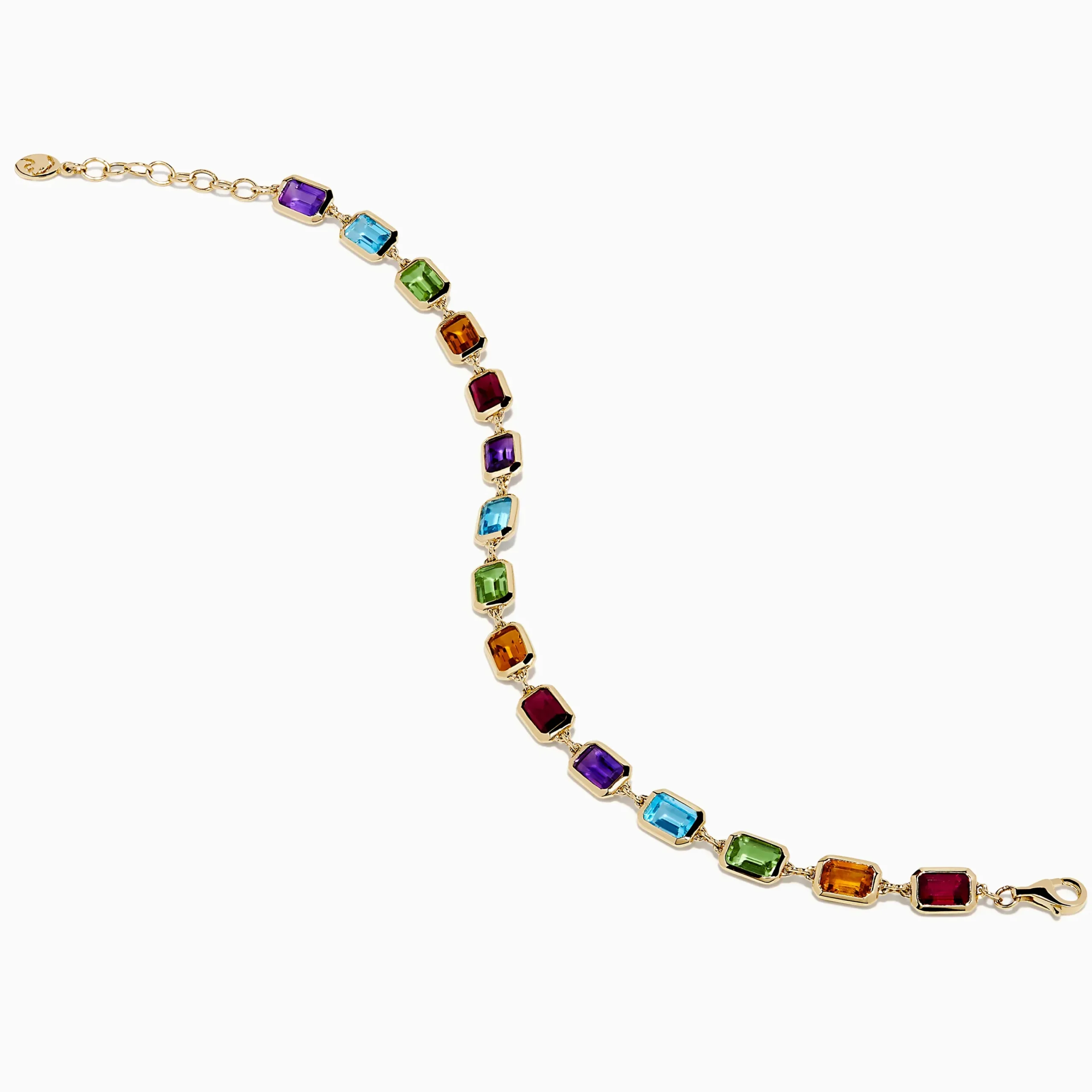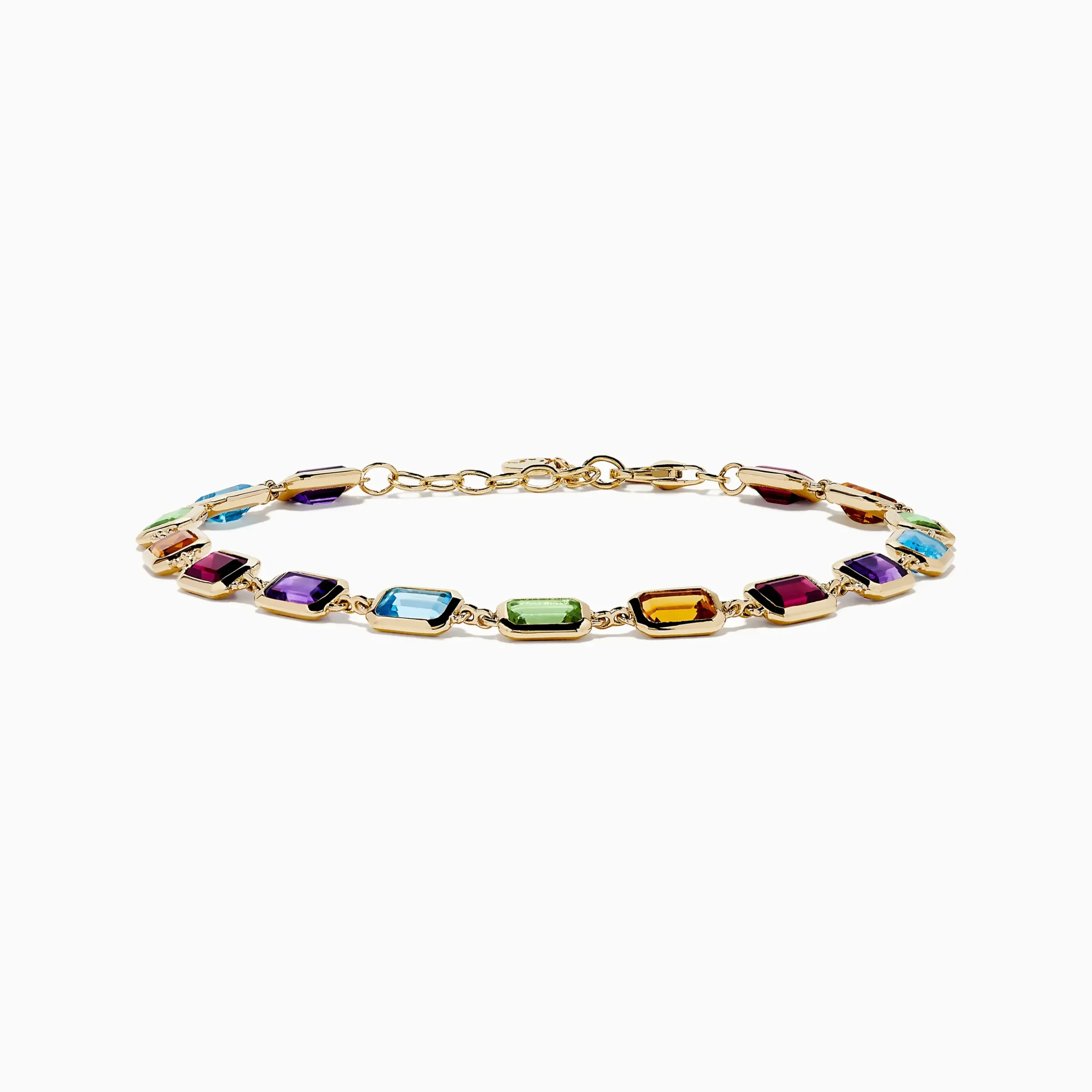 Mosaic 14K Yellow Gold Bezel Multi Color Gemstone Bracelet