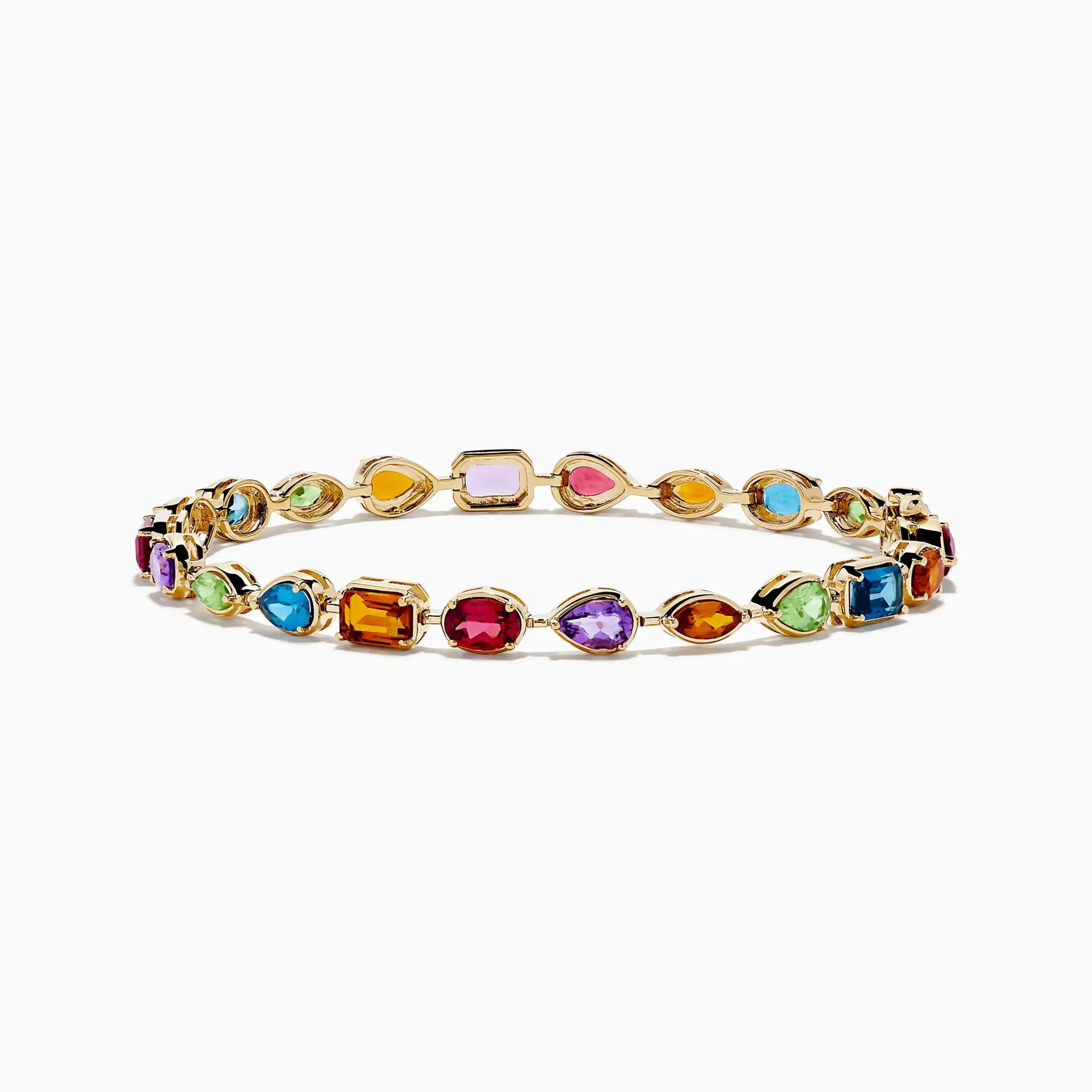 Metal:14K Gold Metal Color:YellowStone: Multi Shape Multi Color 11.05Mosaic 14K Yellow Gold Multi Color Gemstone Bracele…