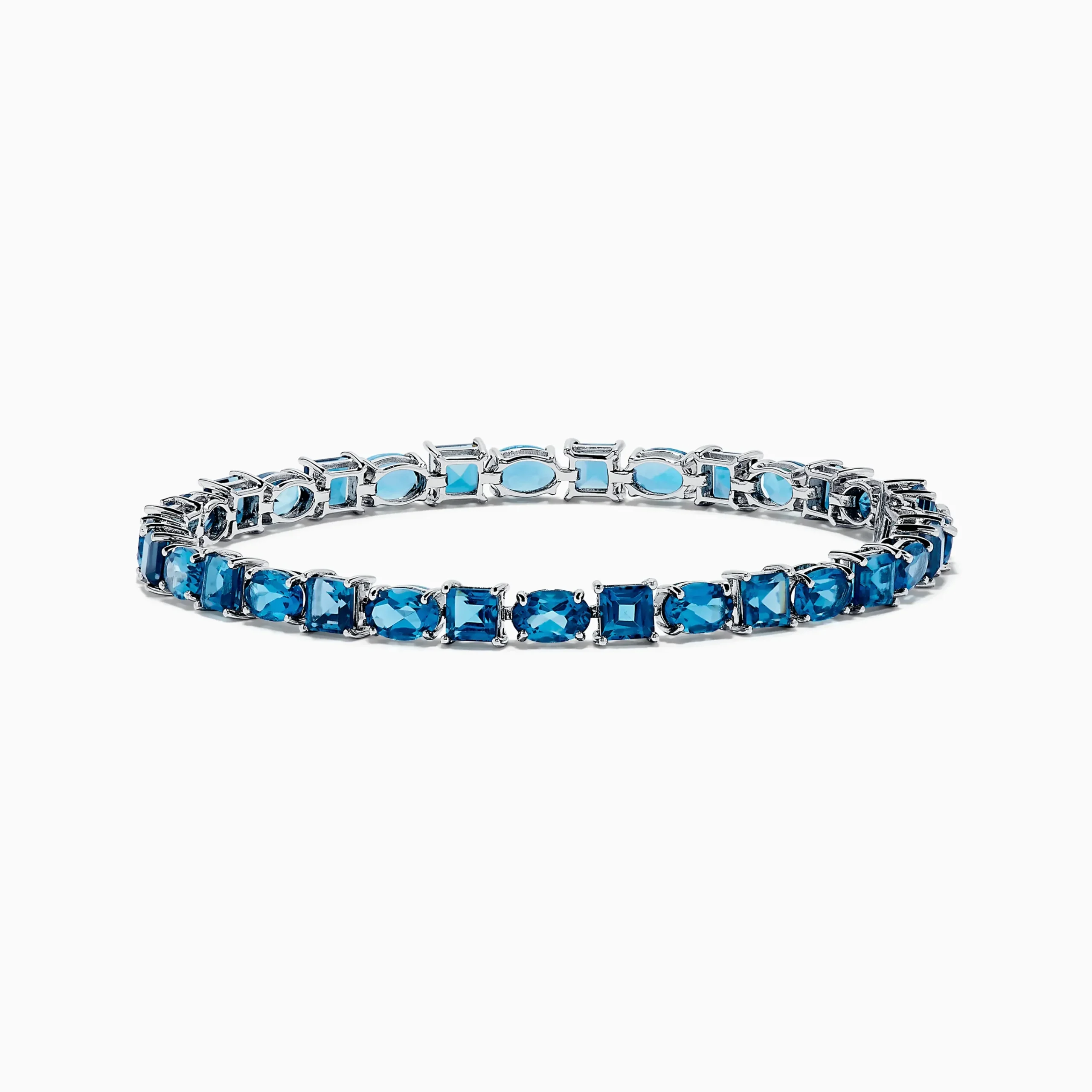 Metal:14K Gold Metal Color:WhiteStone: Multi Shape Blue Topaz 19.2Ocean Bleu 14K White Gold London Blue Topaz Tennis Bra…
