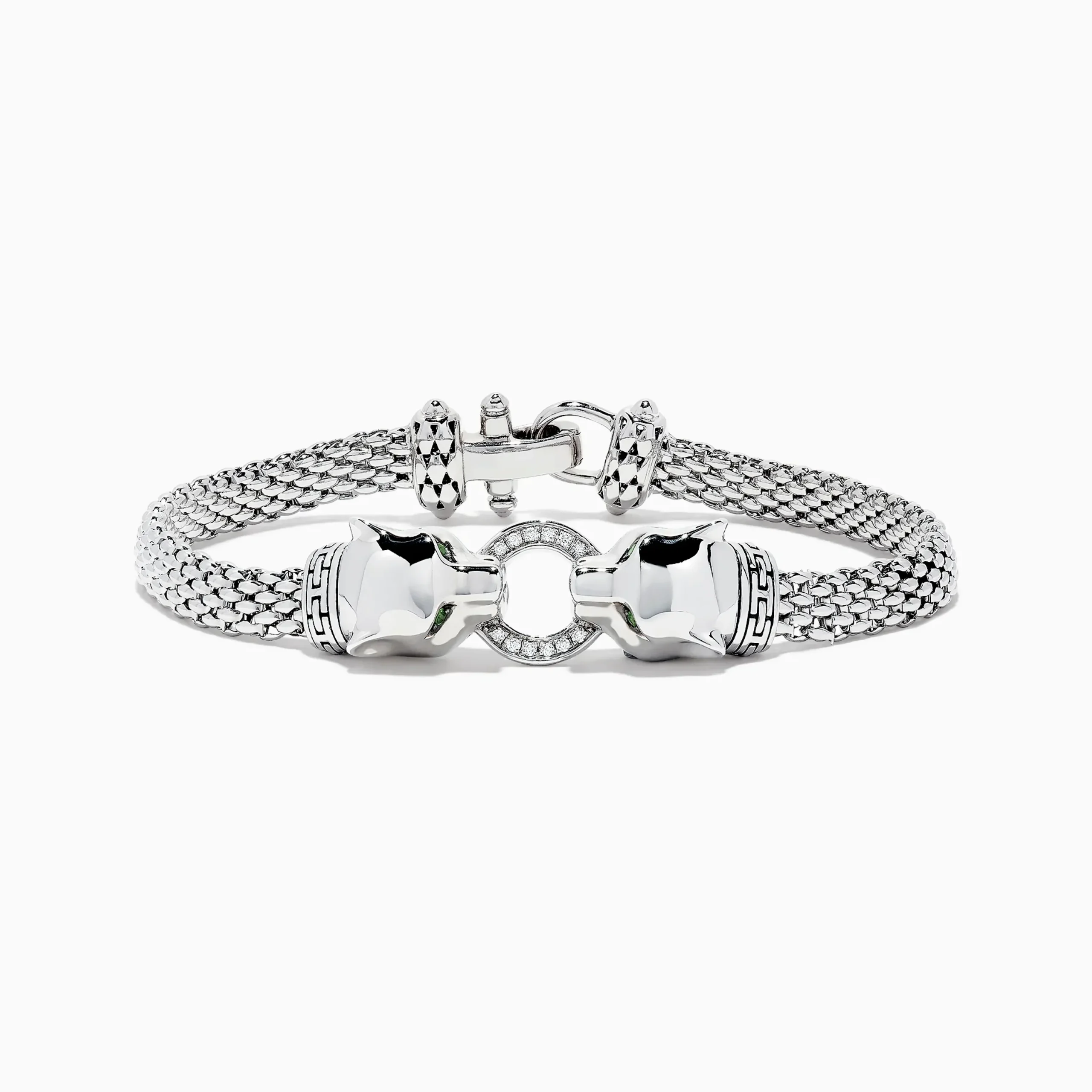 Effy Signature Sterling Silver Diamond and Tsavorite Panther Bracelet, 0.16 TCW