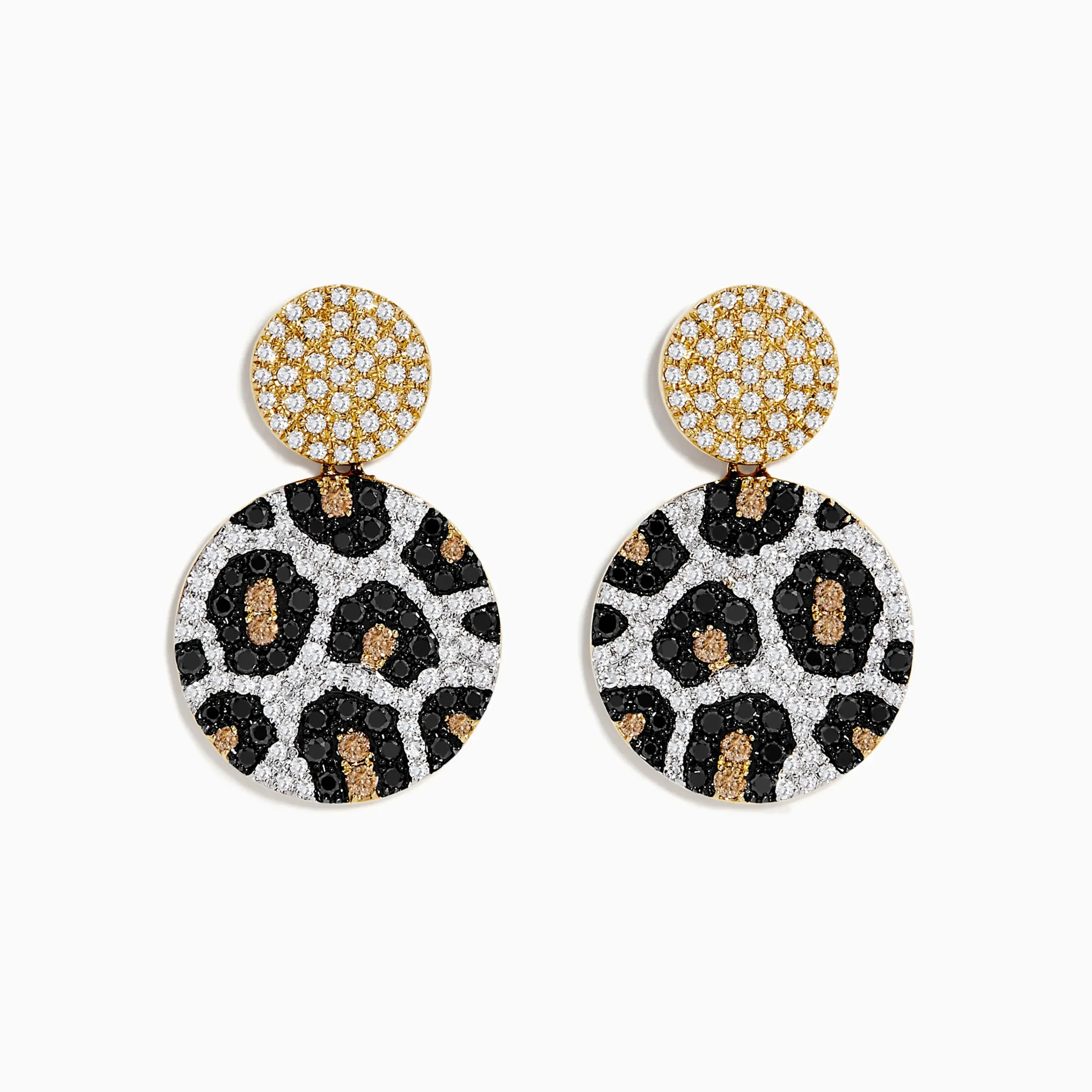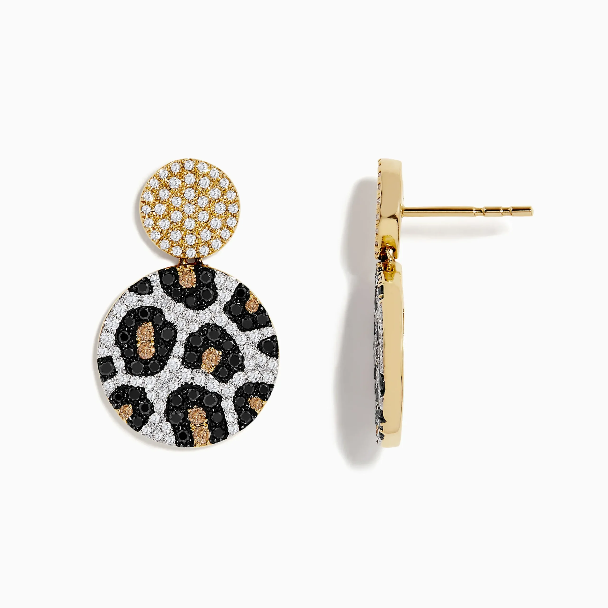 Effy 14K Gold Black, Espresso and White Diamond Panther Spot Drop Earrings, 1.57 TCW