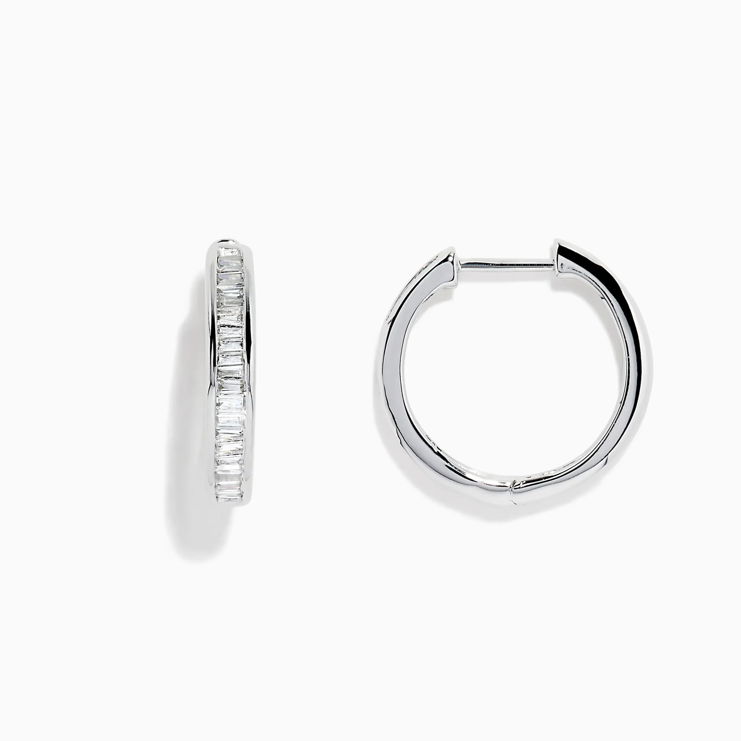 Effy 14K White Gold 7/8″ Diamond Hoop Earrings 0.49 TCW