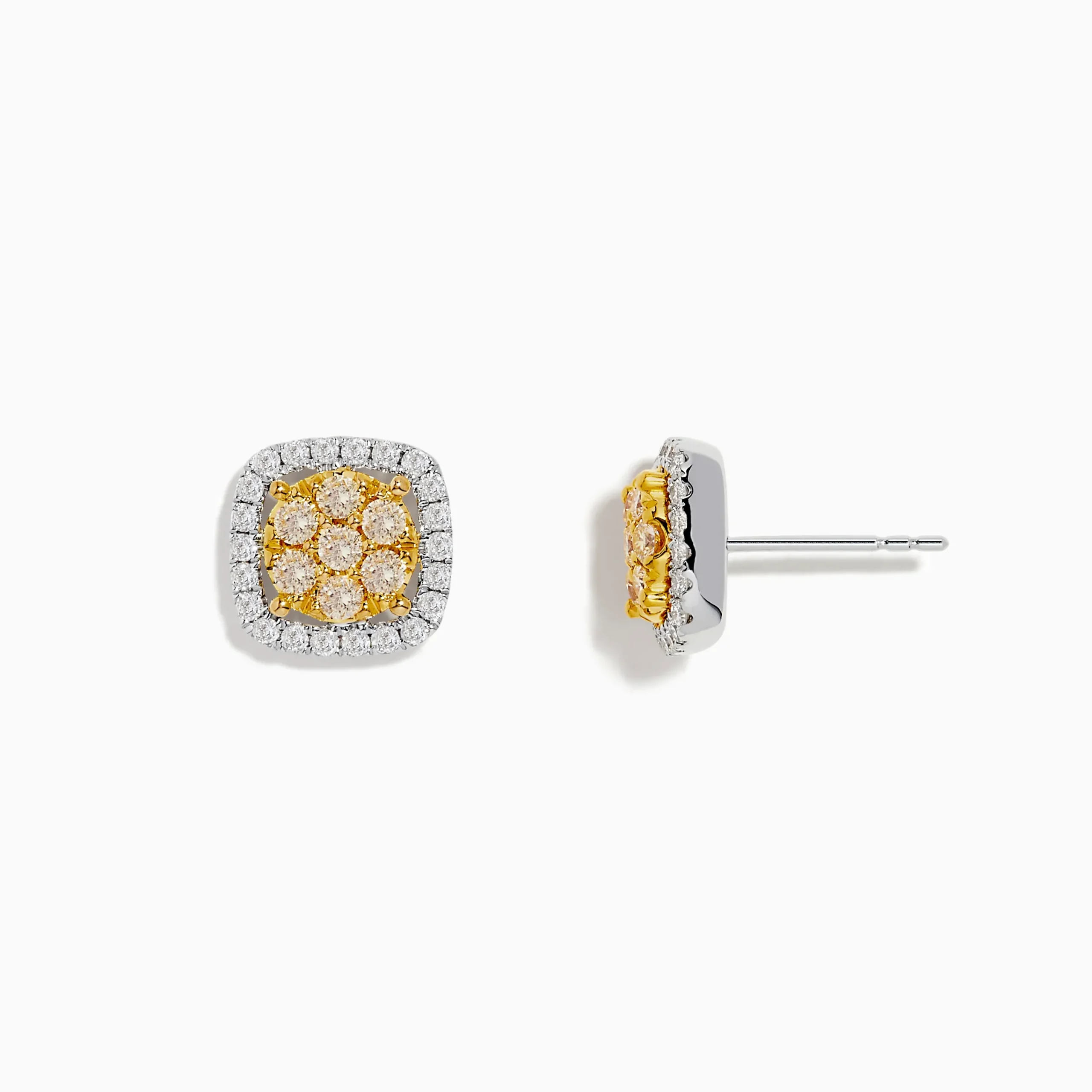 Effy Canare 14K Two Tone Gold Cushion Shaped Cluster Yellow Diamond Earrings