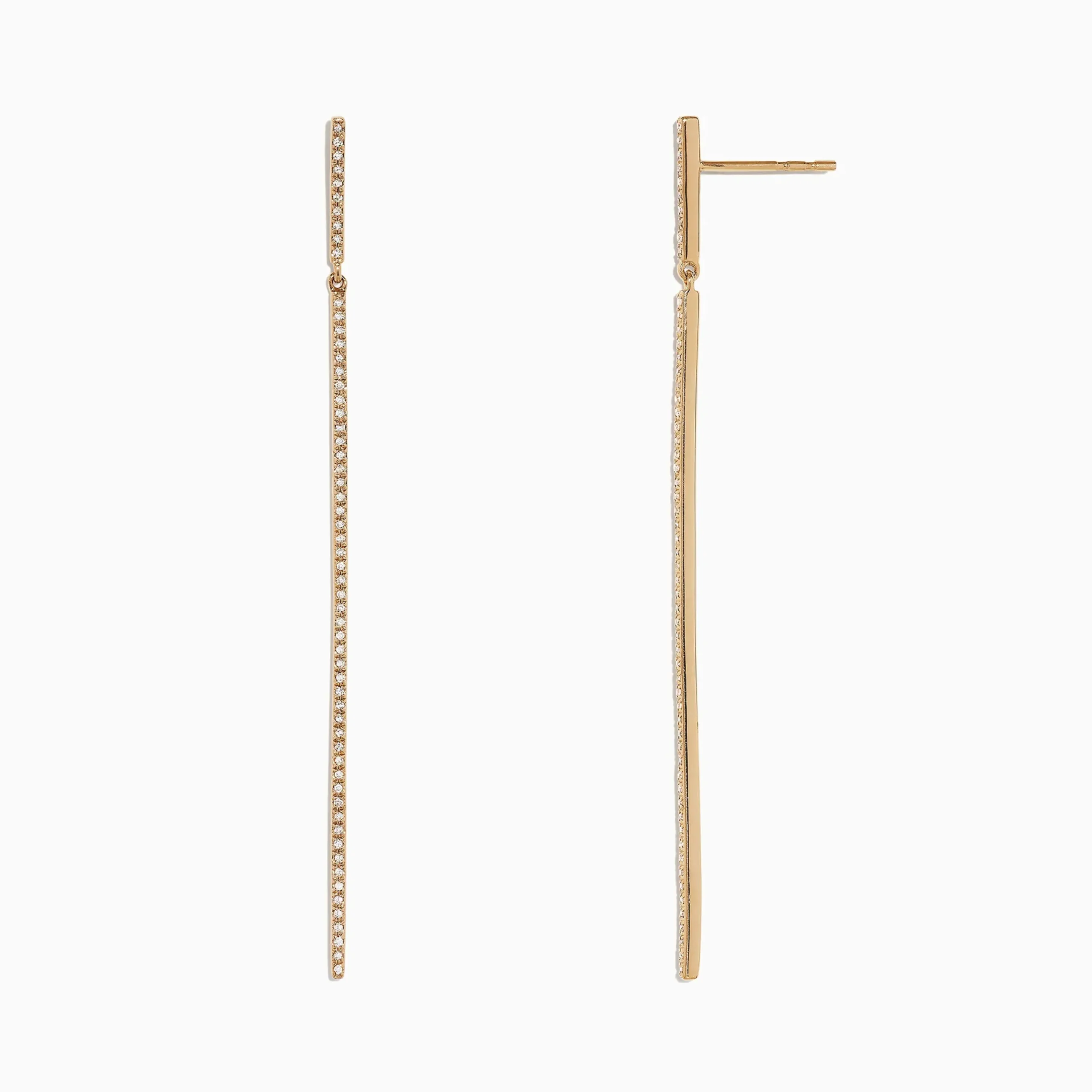 Effy D’Oro 14K Yellow Gold Diamond Vertical Drop Earrings, 0.35 TCW