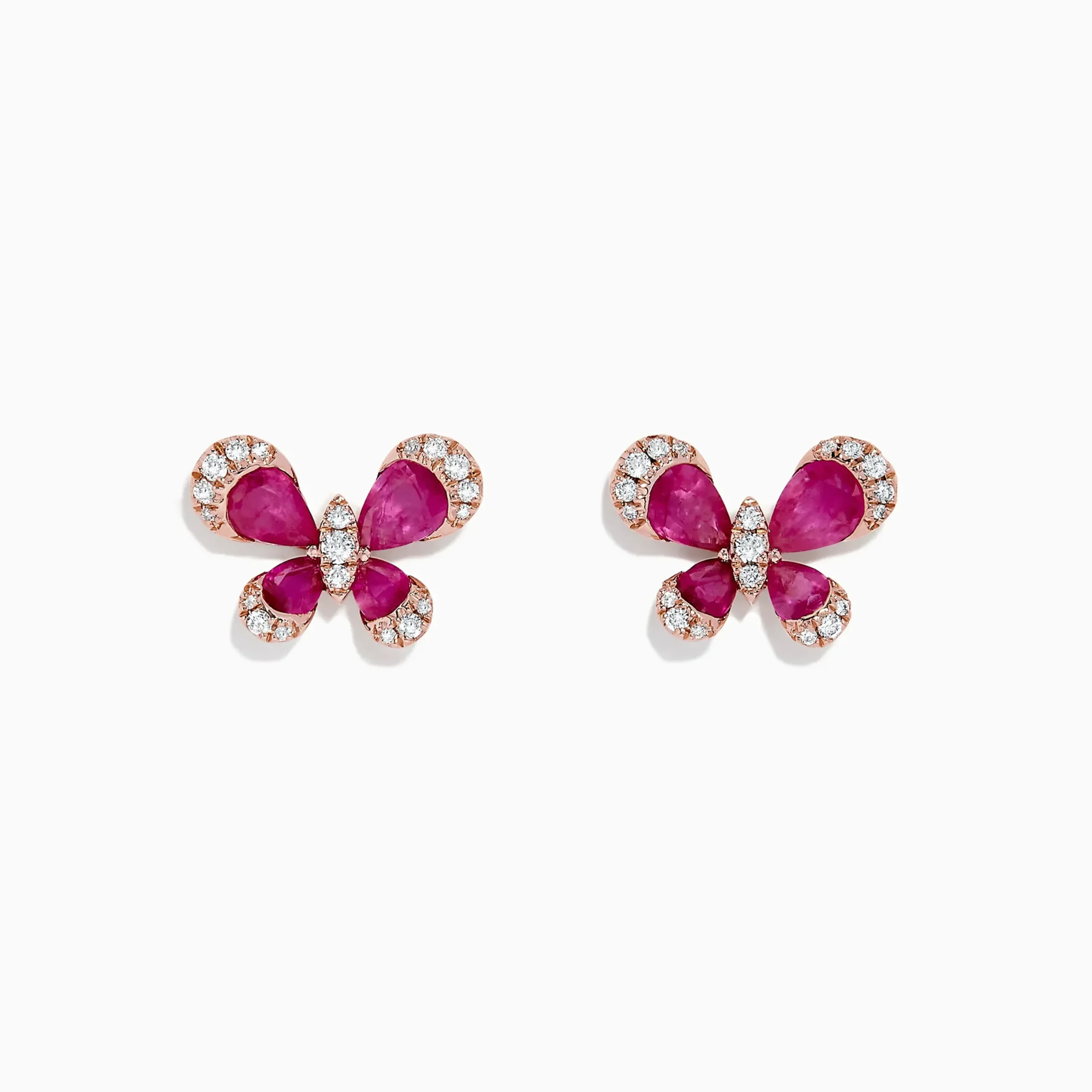 Effy Nature 14K Rose Gold Ruby and Diamond Butterfly Earrings, 2.44 TCW