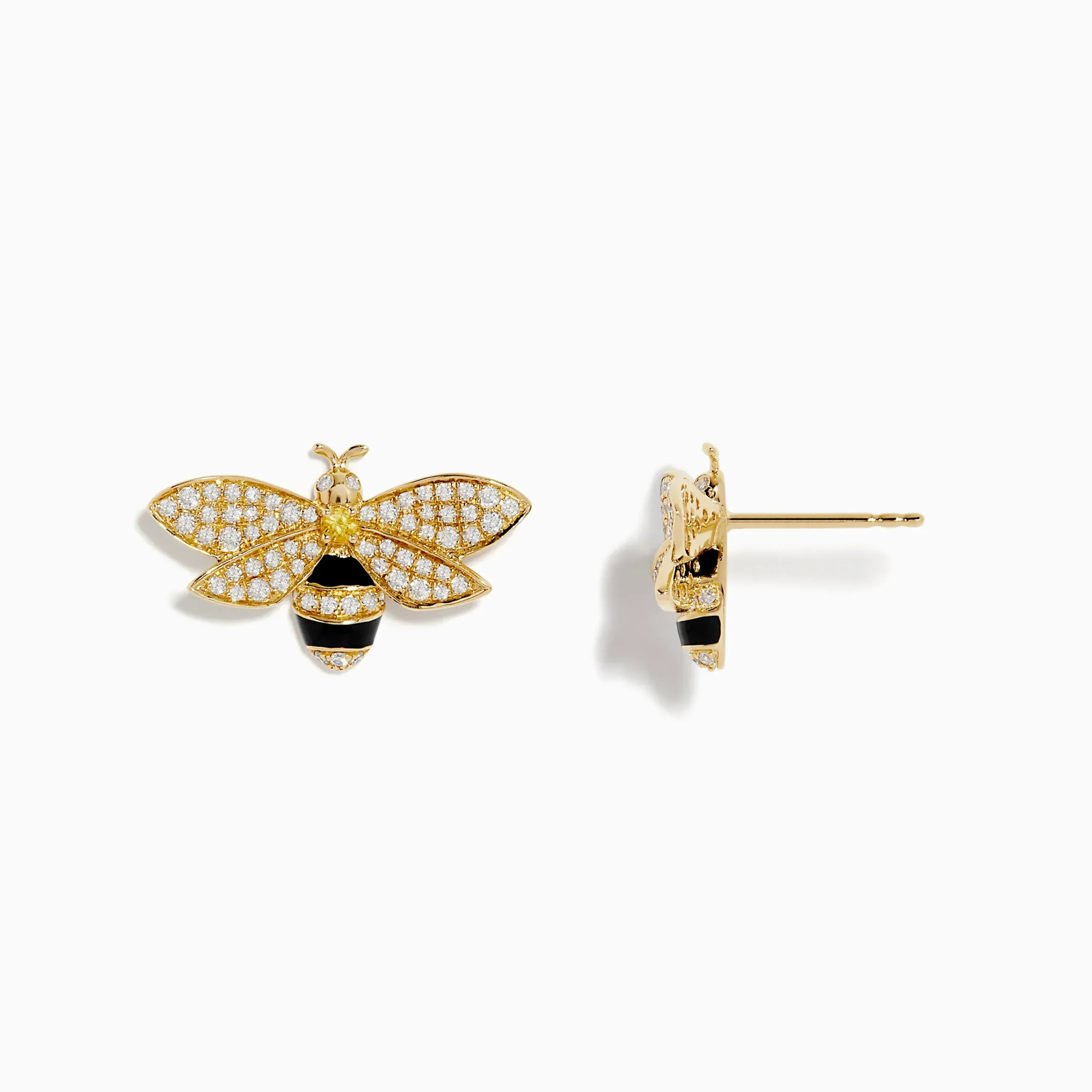 Effy Nature 14K Yellow Gold Diamond and Yellow Sapphire Bee Earrings