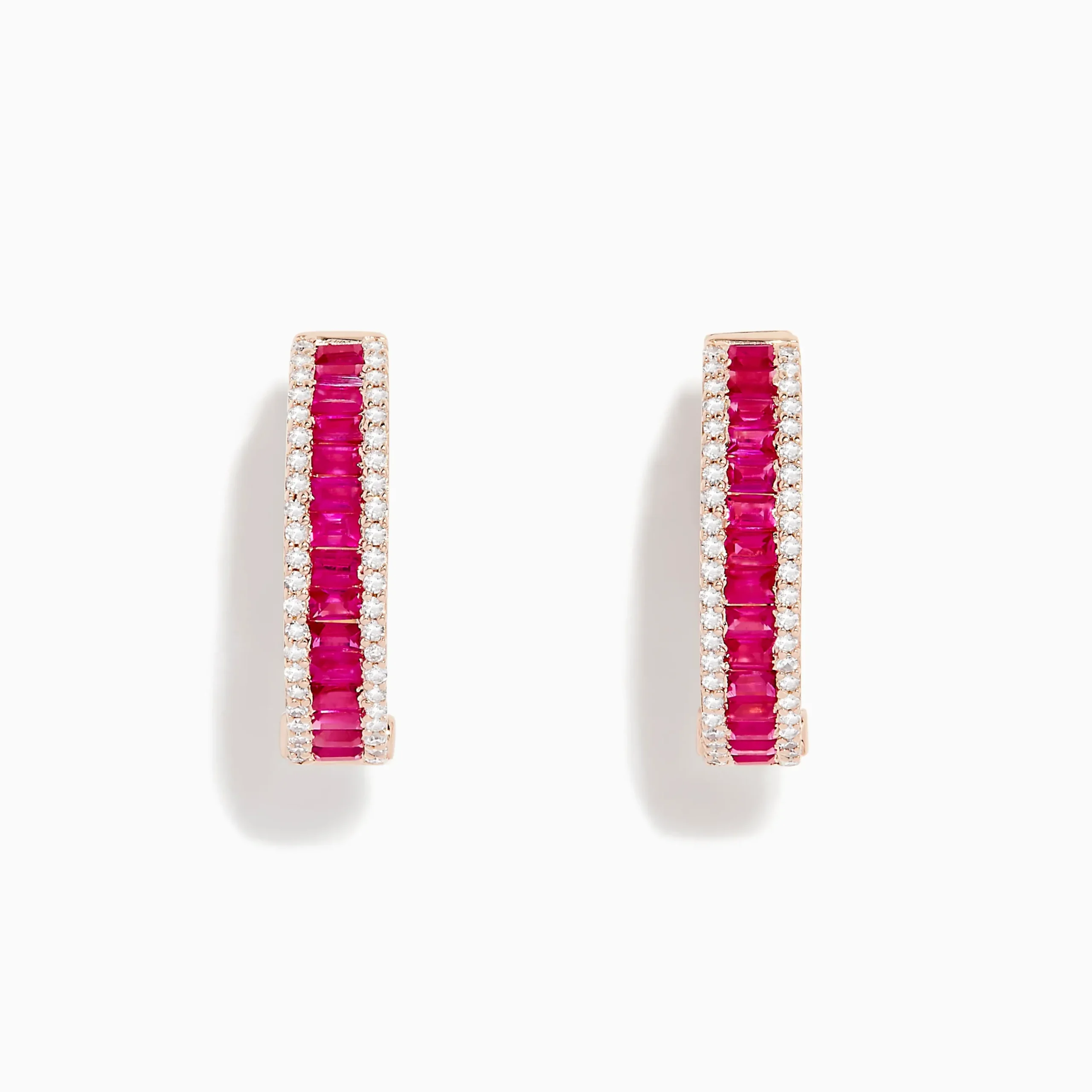 Effy Ruby Royale 14K Rose Gold Baguette Cut Ruby 3/4″ Hoop Earrings