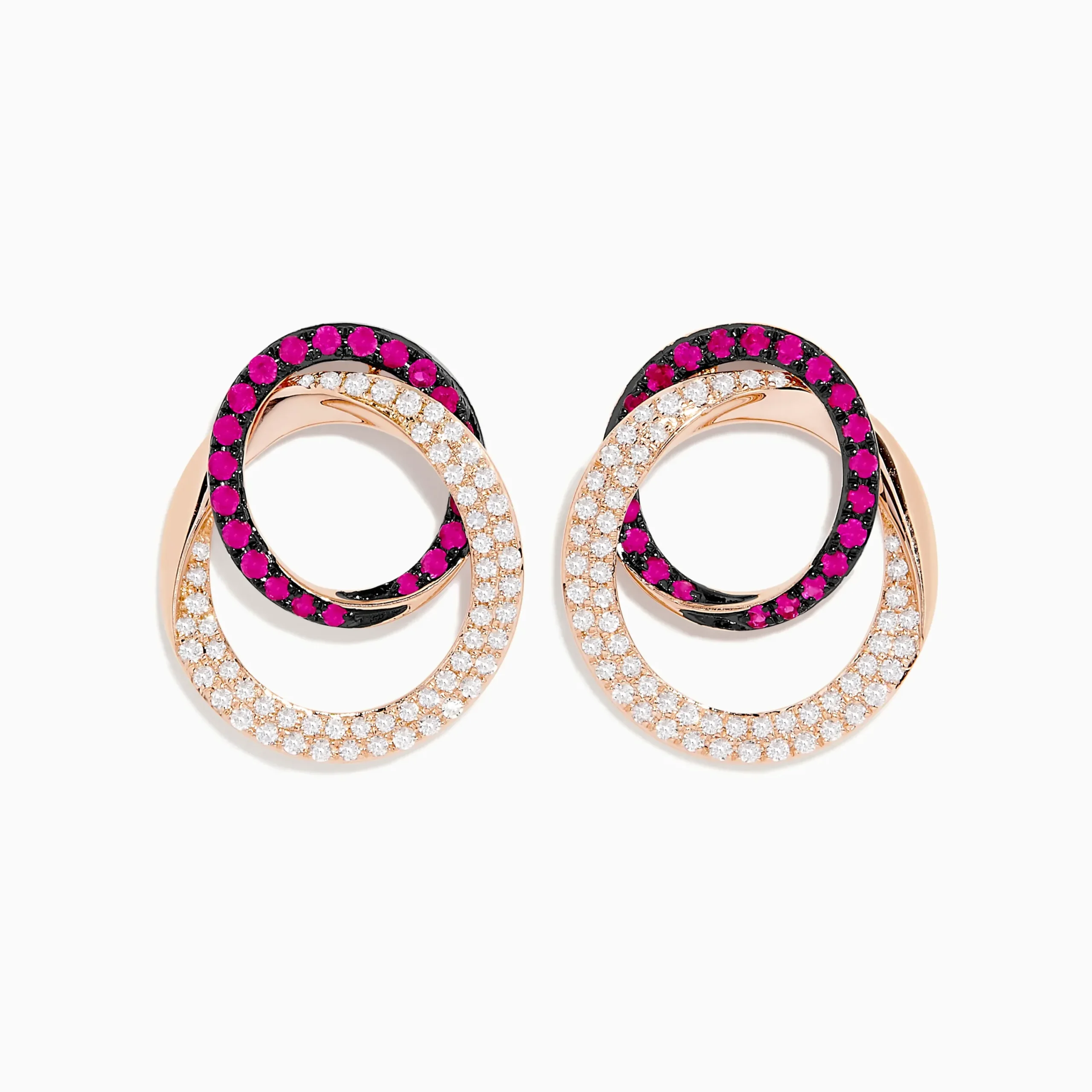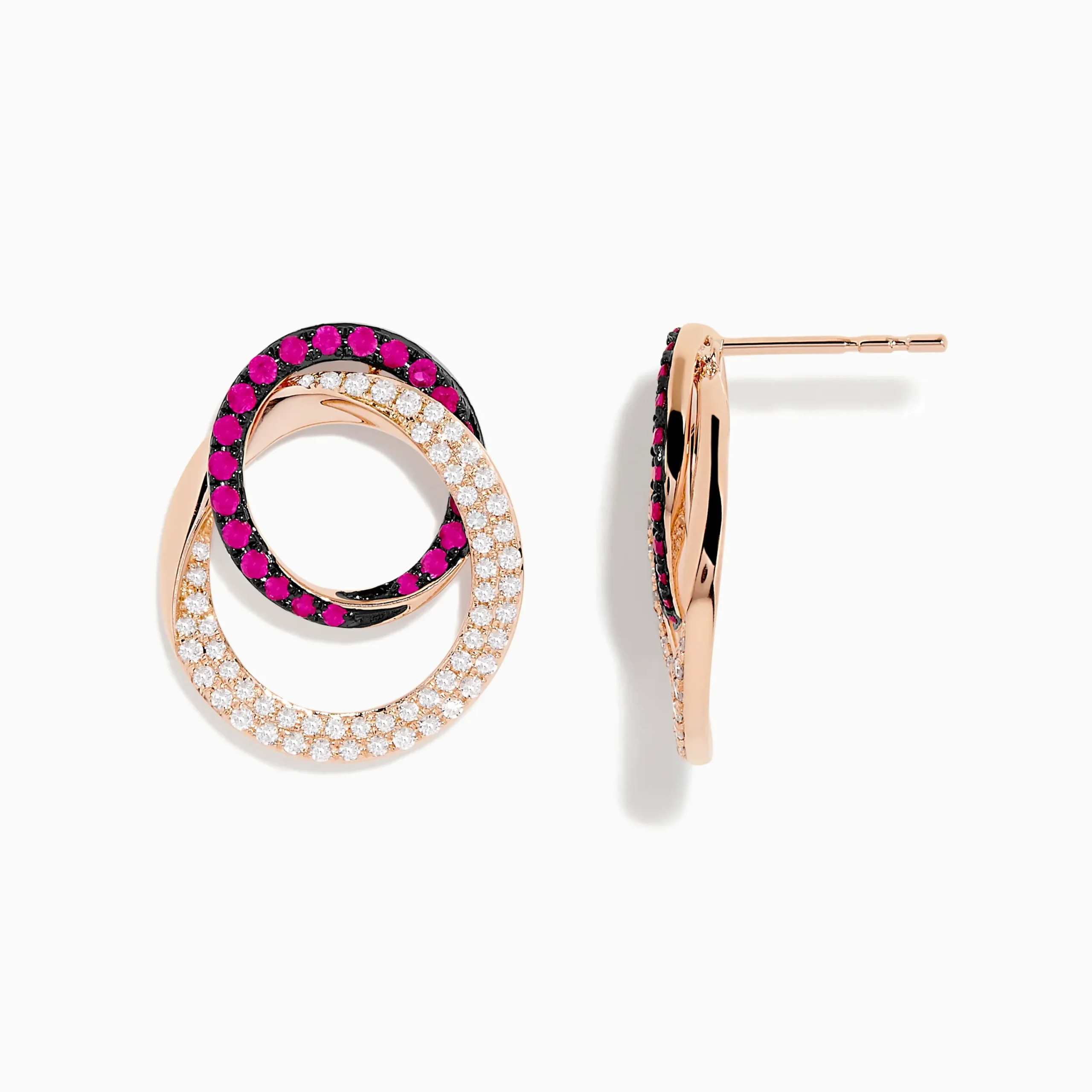 Effy Ruby Royale 14K Rose Gold Ruby and Diamond Intertwined Circles Earrings