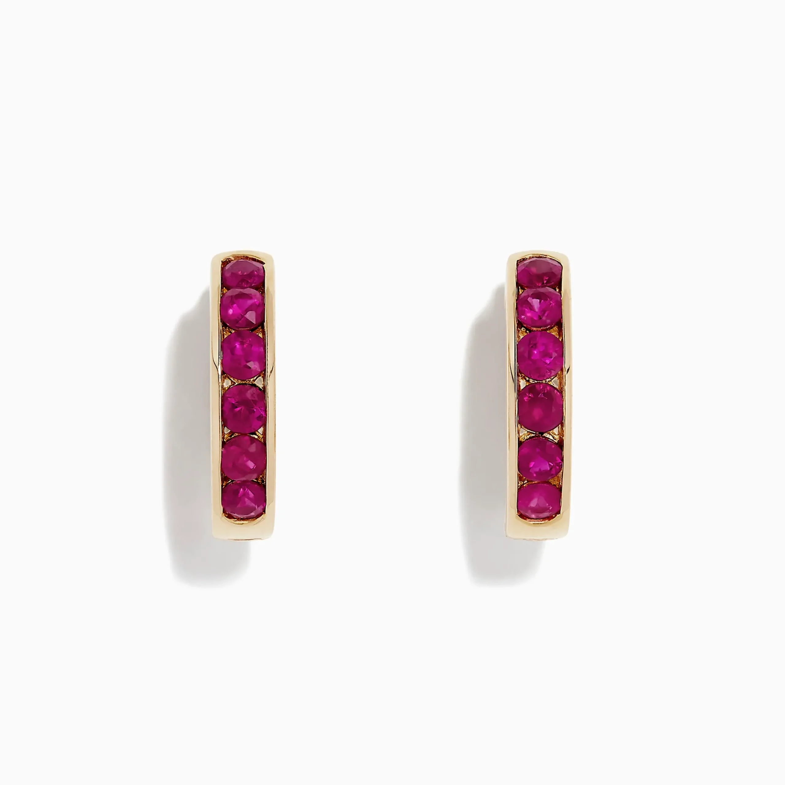 Effy Ruby Royale 14K Yellow Gold Channel Set Ruby 5/8″ Hoop Earrings, 1.60 TCW