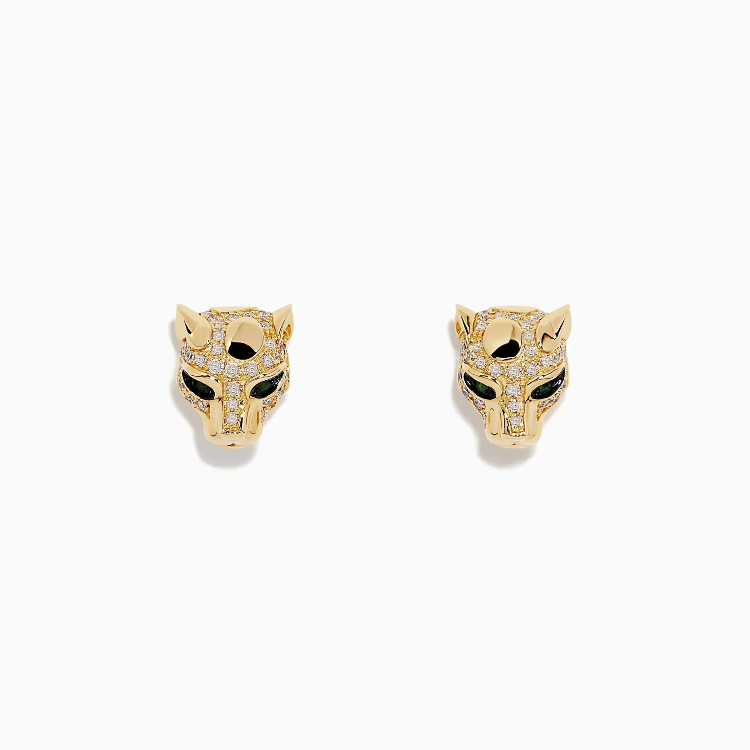 Effy Signature 14K Gold Emerald and Diamond Panther Earrings, 0.35 TCW