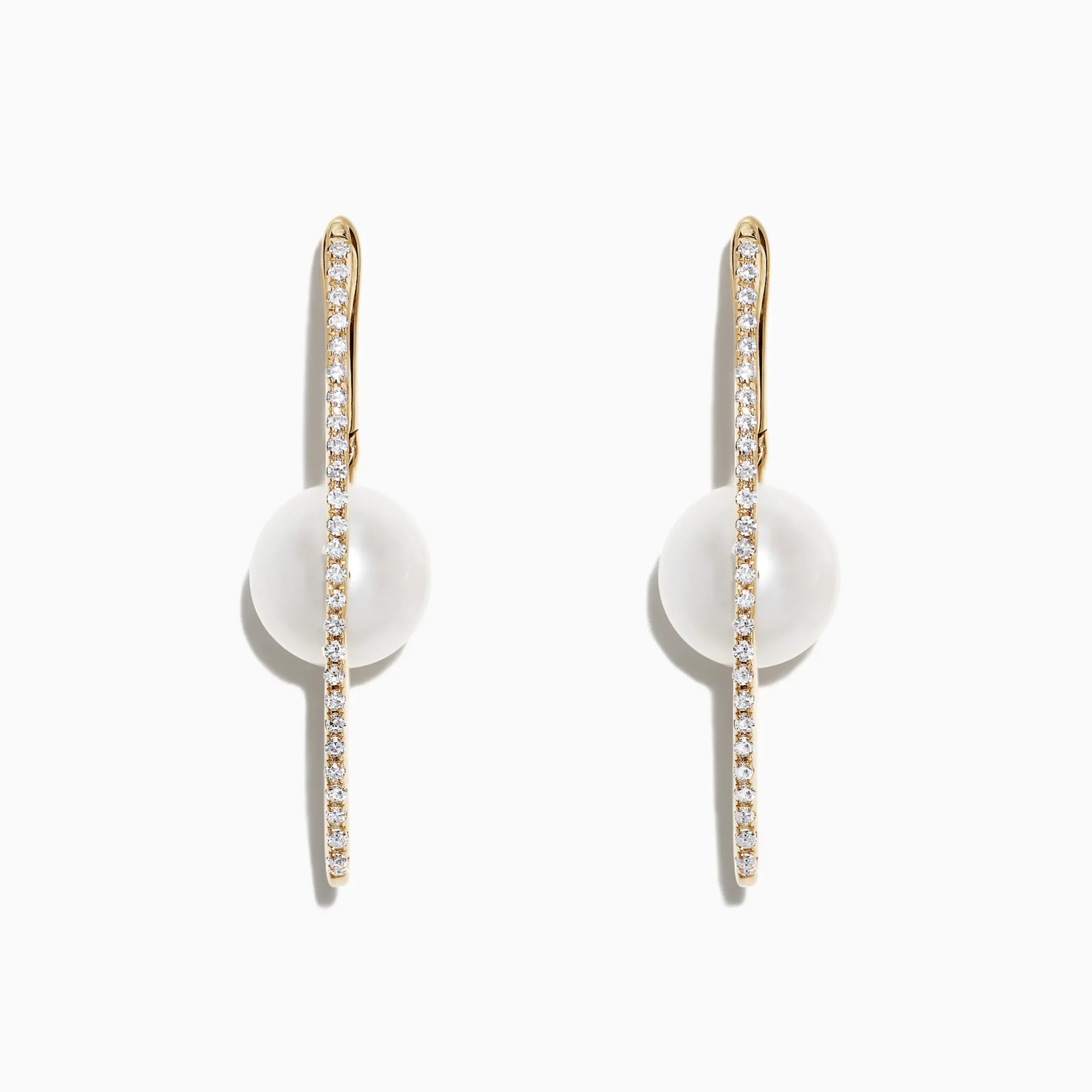 Effy 14K Gold Cultured Fresh Water Pearl & Diamond Hoop Earrings, 0.20 TCW