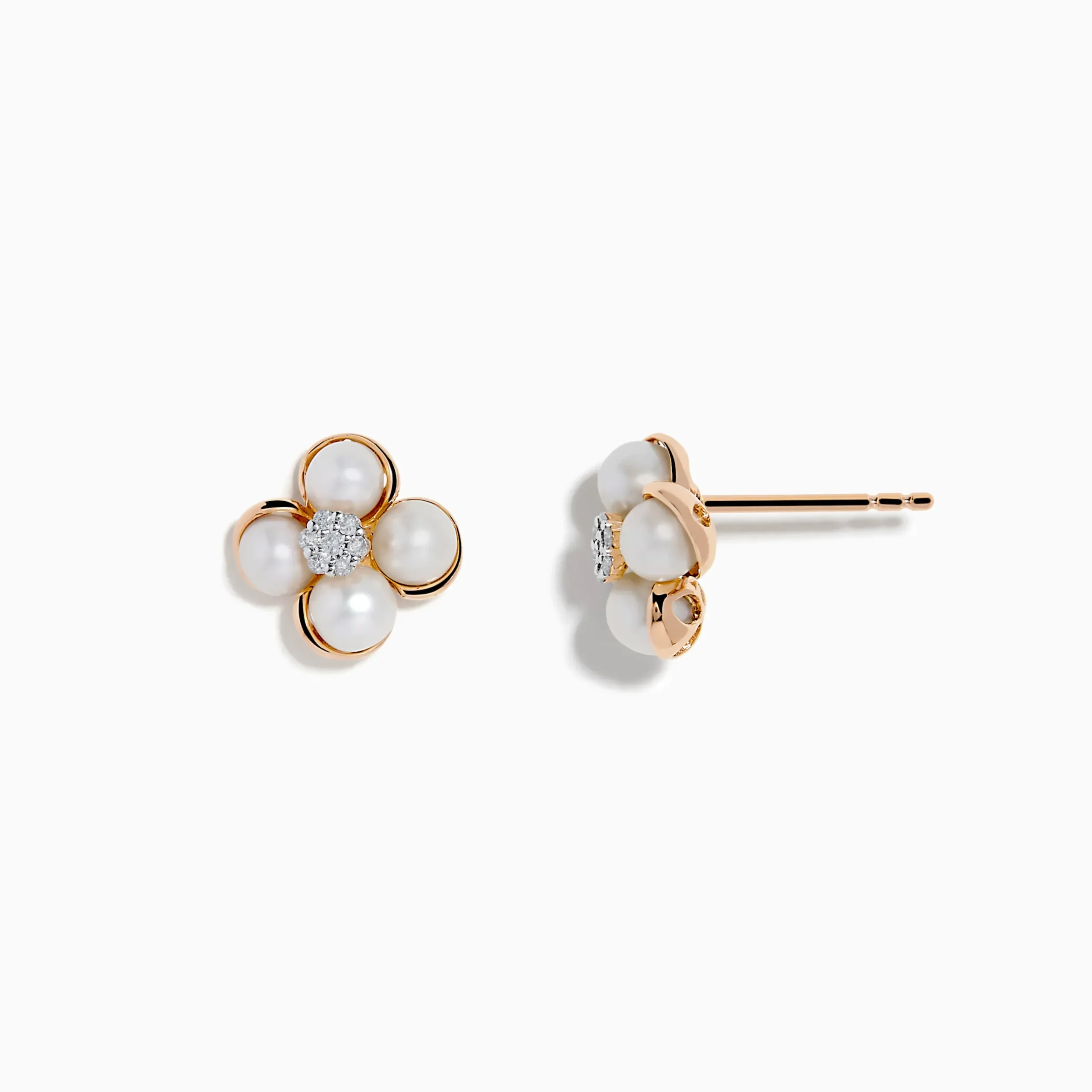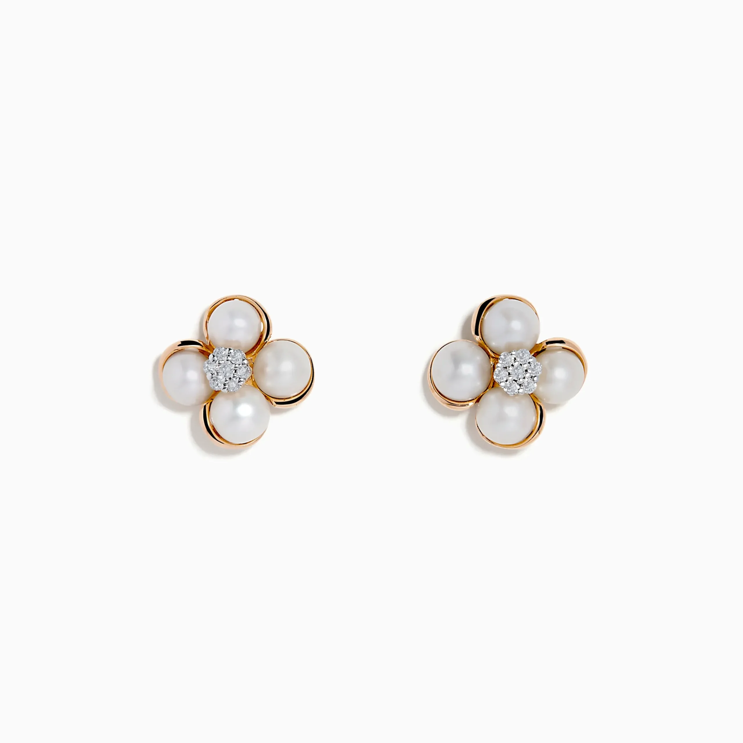 14K Pink Gold Fresh Water Pearl and Diamond Earrings